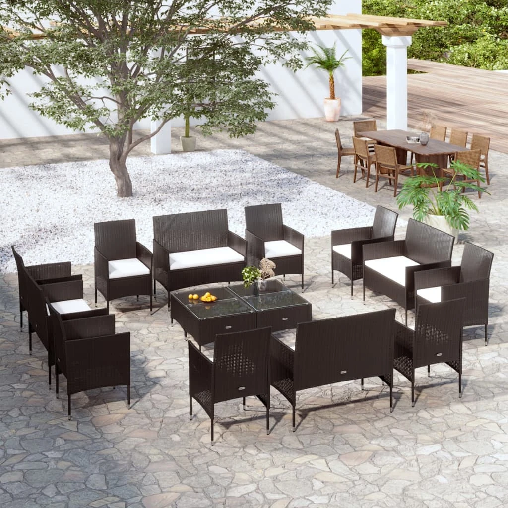 vidaXL 16-daļīgs dārza atpūtas mēbeļu komplekts, melna PE rotangpalma