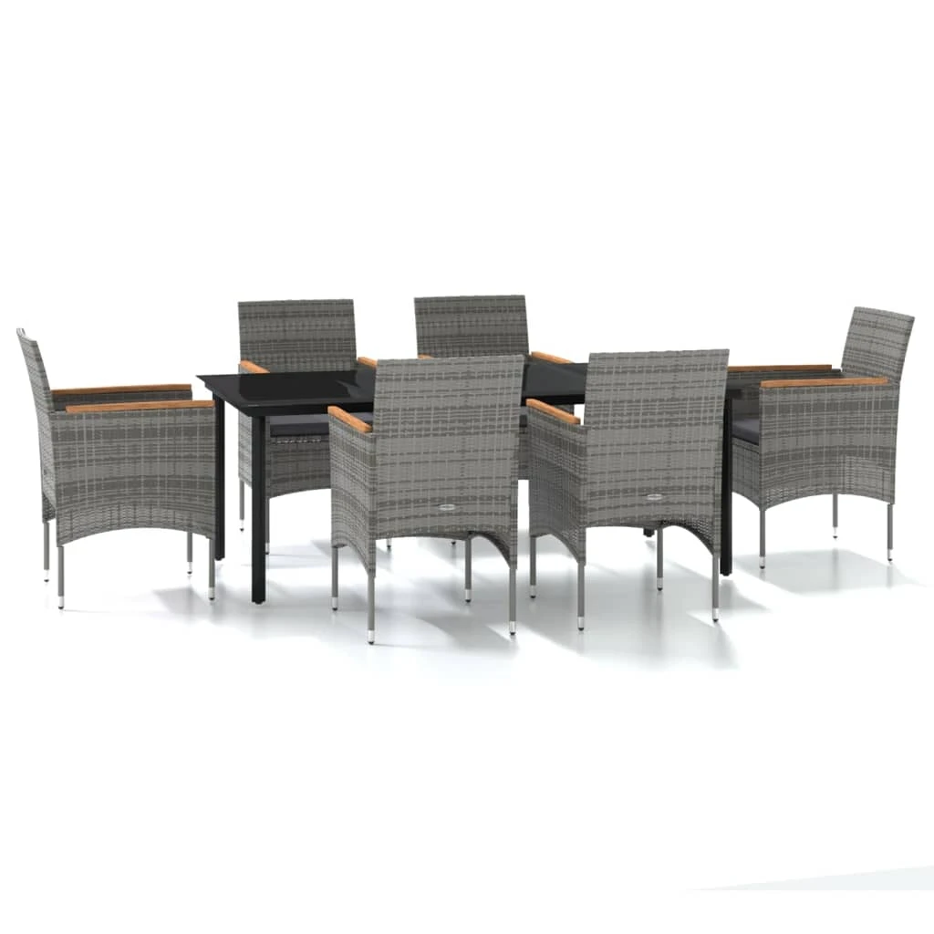 vidaXL 7-daļīgs dārza mēbeļu komplekts ar matračiem, pelēka ar melns