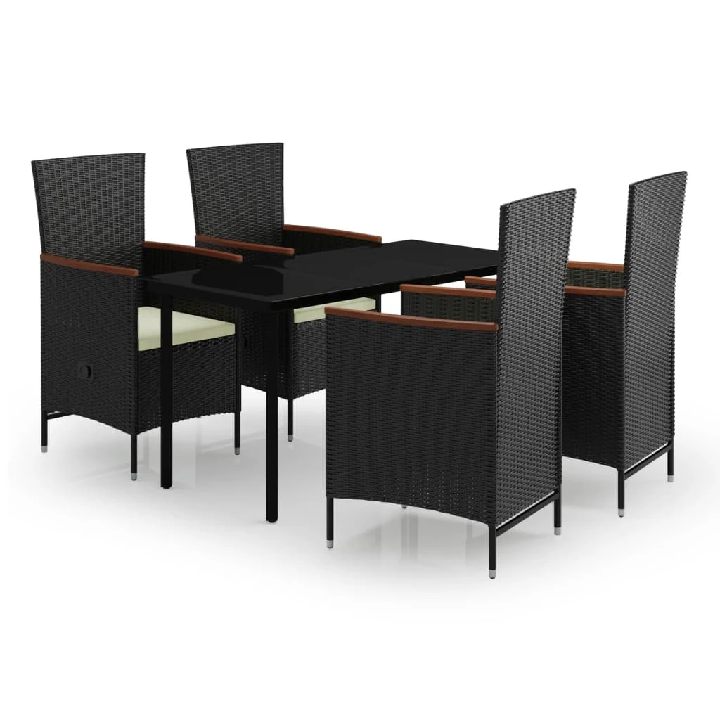vidaXL 5-daļīgs dārza mēbeļu komplekts ar matračiem, melns