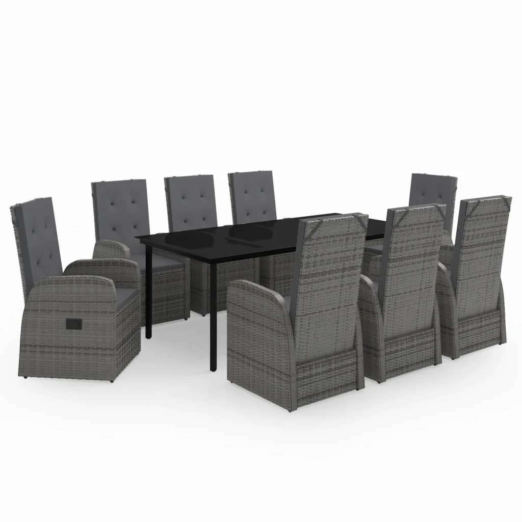 vidaXL 9-daļīgs dārza mēbeļu komplekts ar matračiem, pelēks