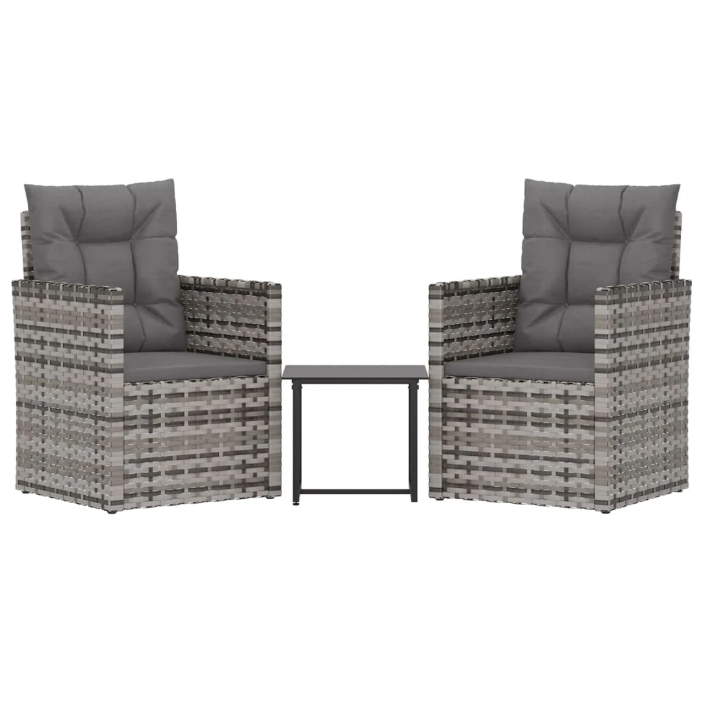 vidaXL 3-daļīgs āra atpūtas mēbeļu komplekts ar matračiem, pelēks PE