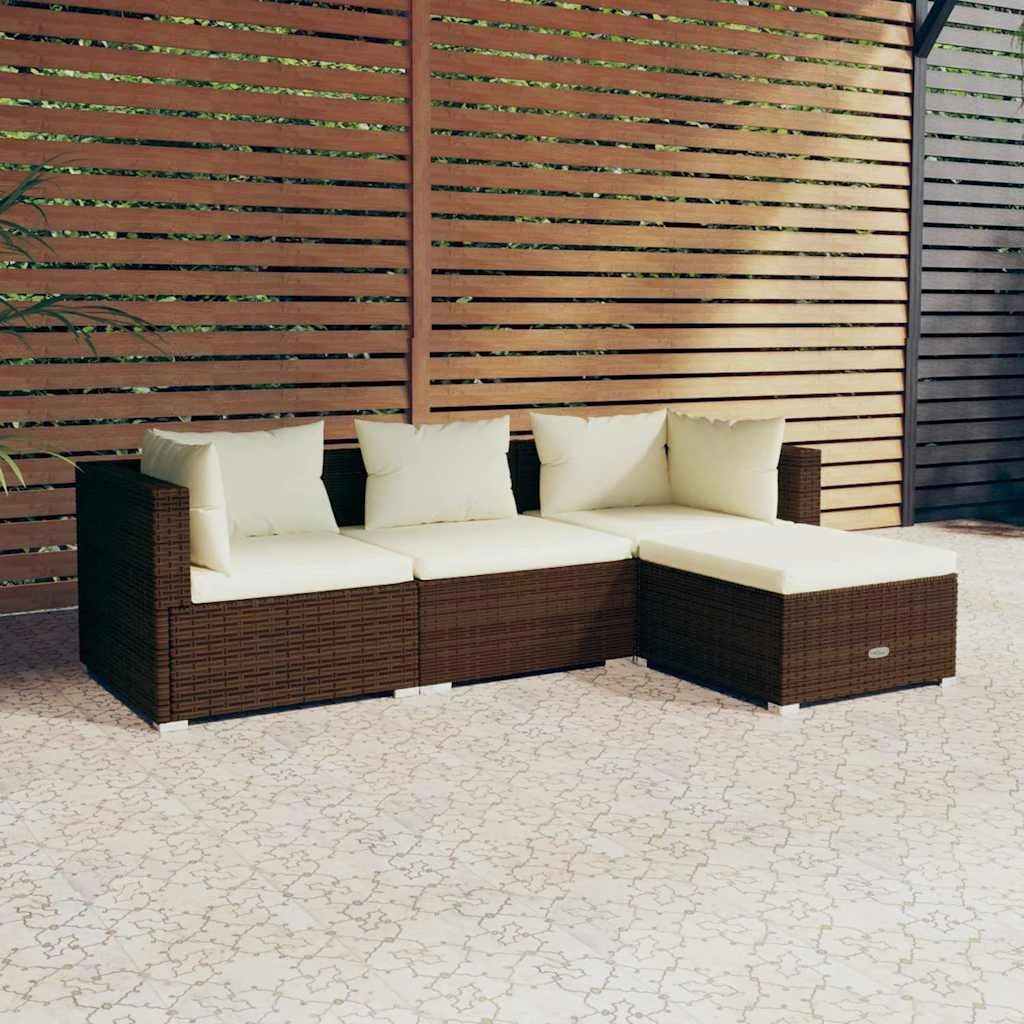 vidaXL 4-daļīgs dārza atpūtas mēbeļu komplekts, brūna PE rotangpalma