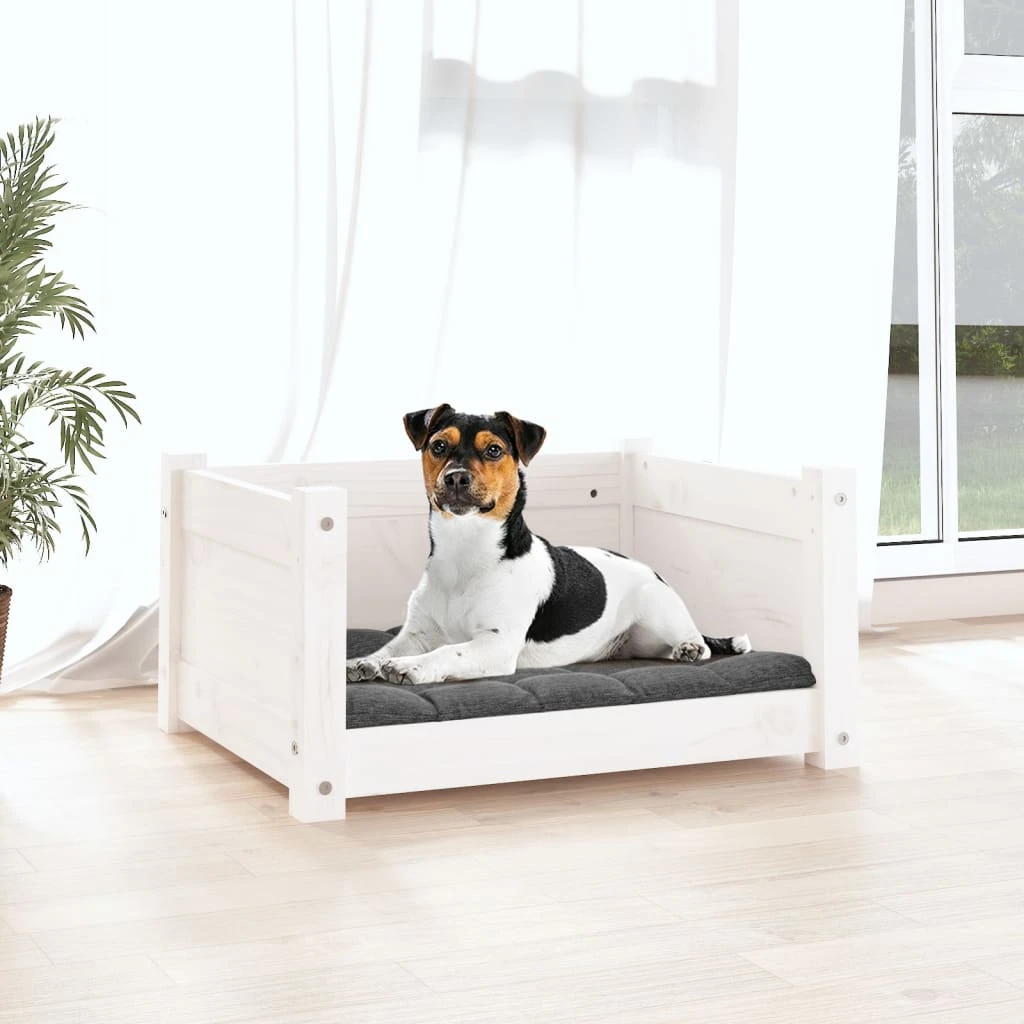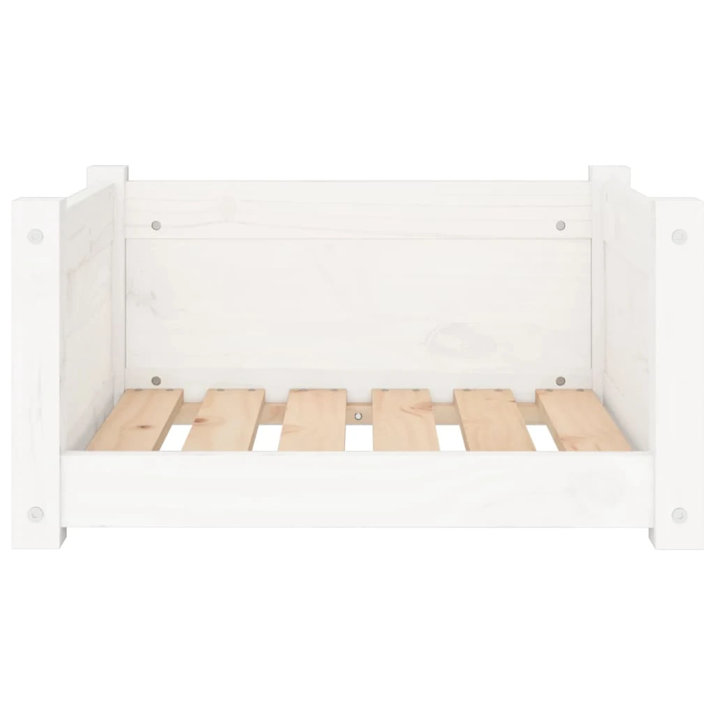 vidaXL suņu gulta, balta, 55,5x45,5x28 cm, masīvs priedes koks