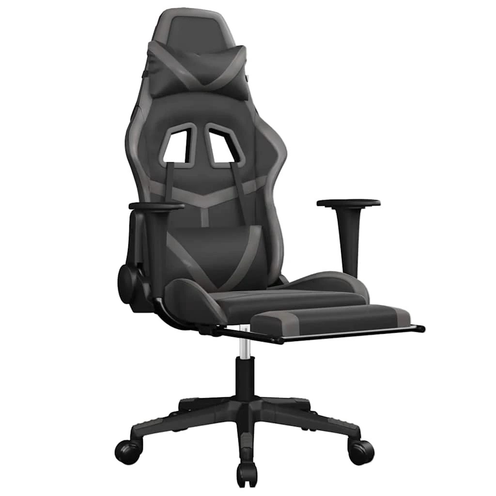 vidaXL masāžas datorkrēsls ar kāju balstu, melna, pelēka mākslīgā āda