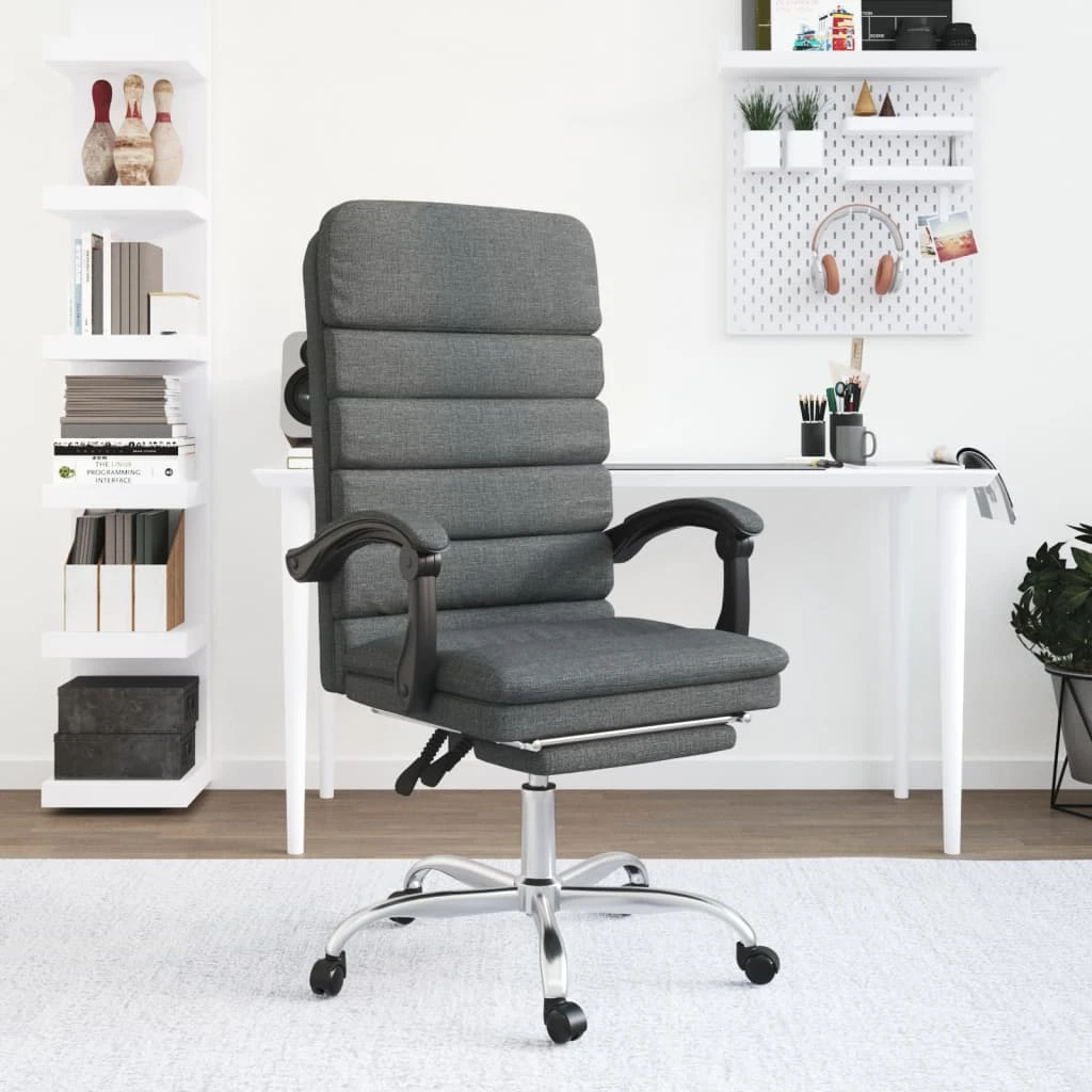 vidaXL masāžas biroja krēsls, atgāžams, tumši pelēks audums