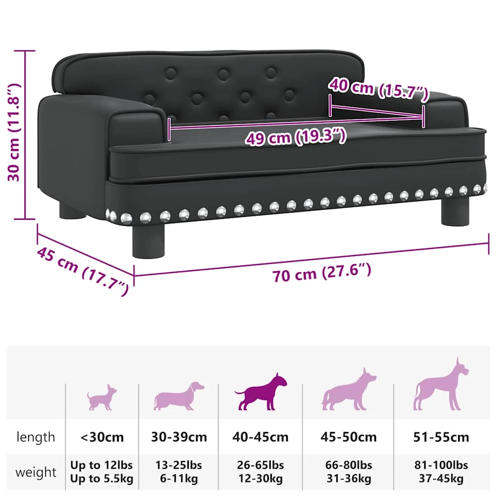 vidaXL gulta suņiem, melna, 70x45x30 cm, mākslīgā āda
