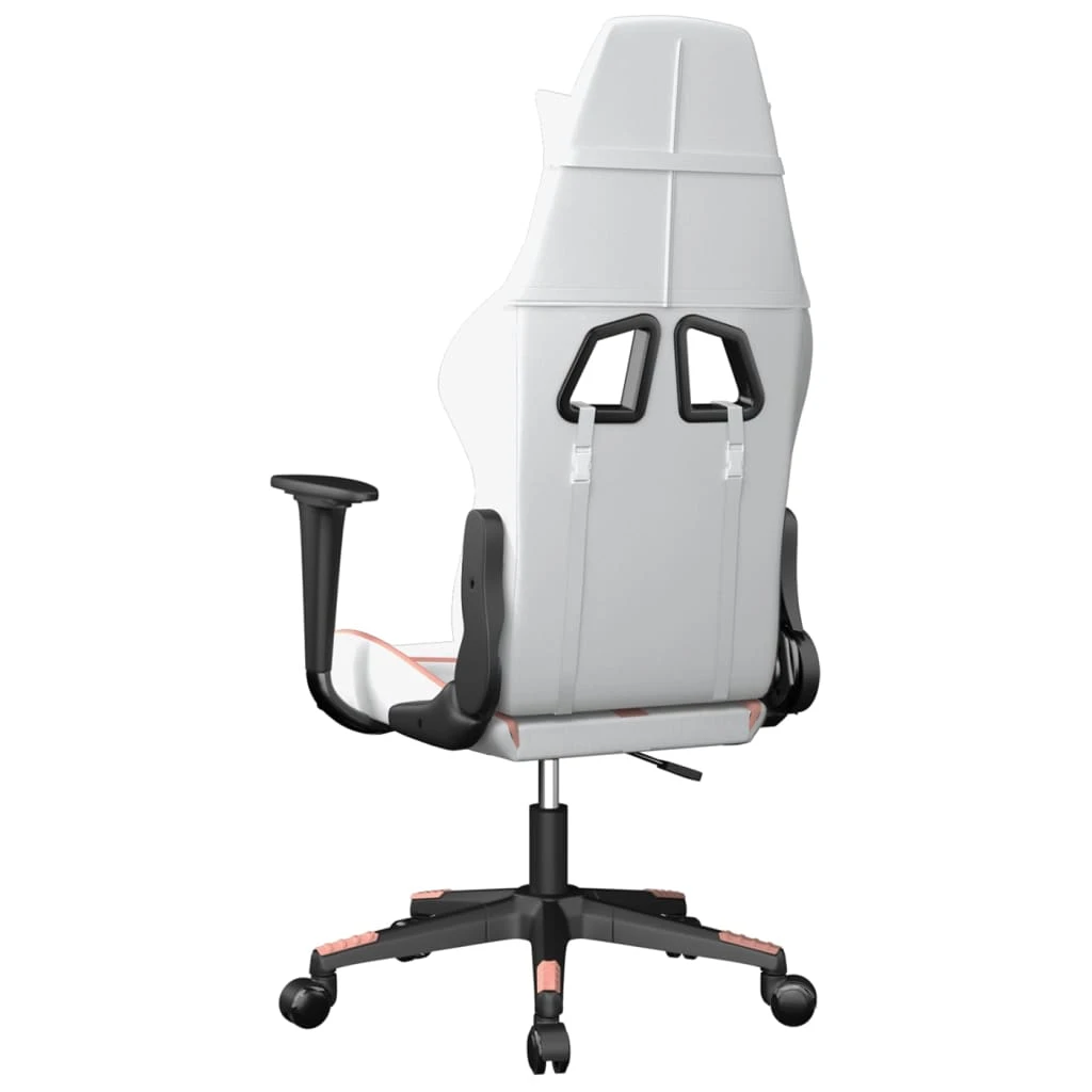 vidaXL datorspēļu krēsls, balta un rozā mākslīgā āda