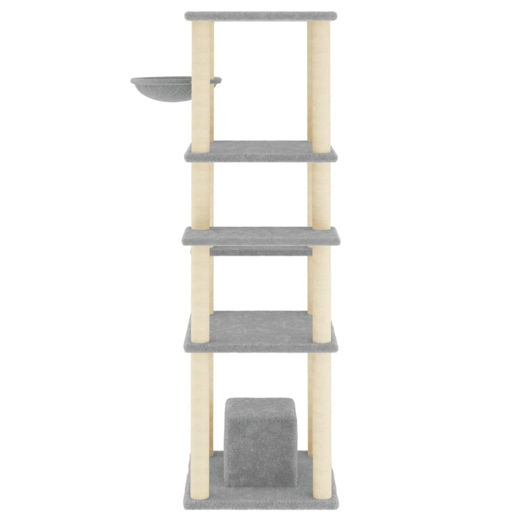 vidaXL kaķu māja ar sizala stabiem nagu asināšanai, 154 cm, pelēka