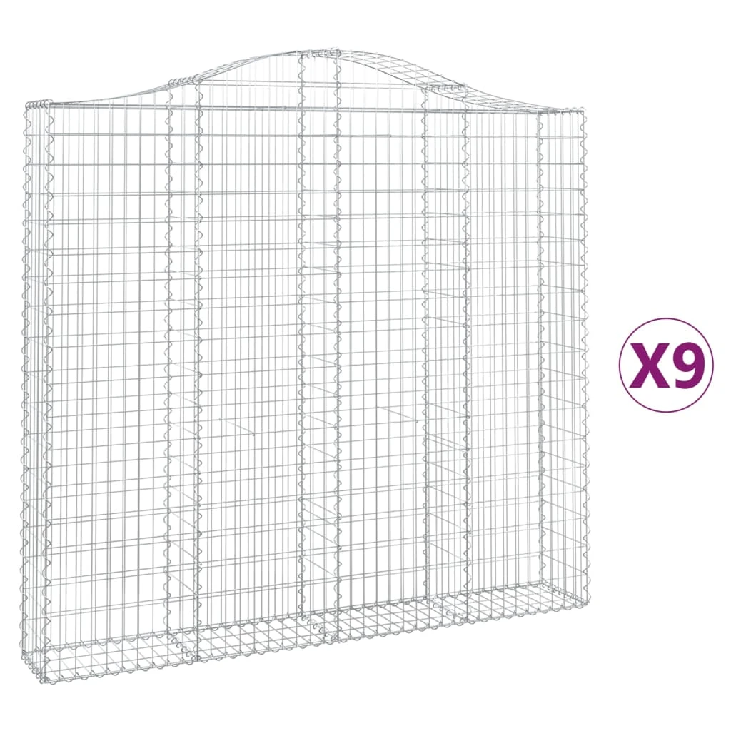 vidaXL arkveida gabiona grozi, 9 gb., 200x30x180-200cm, cinkota dzelzs
