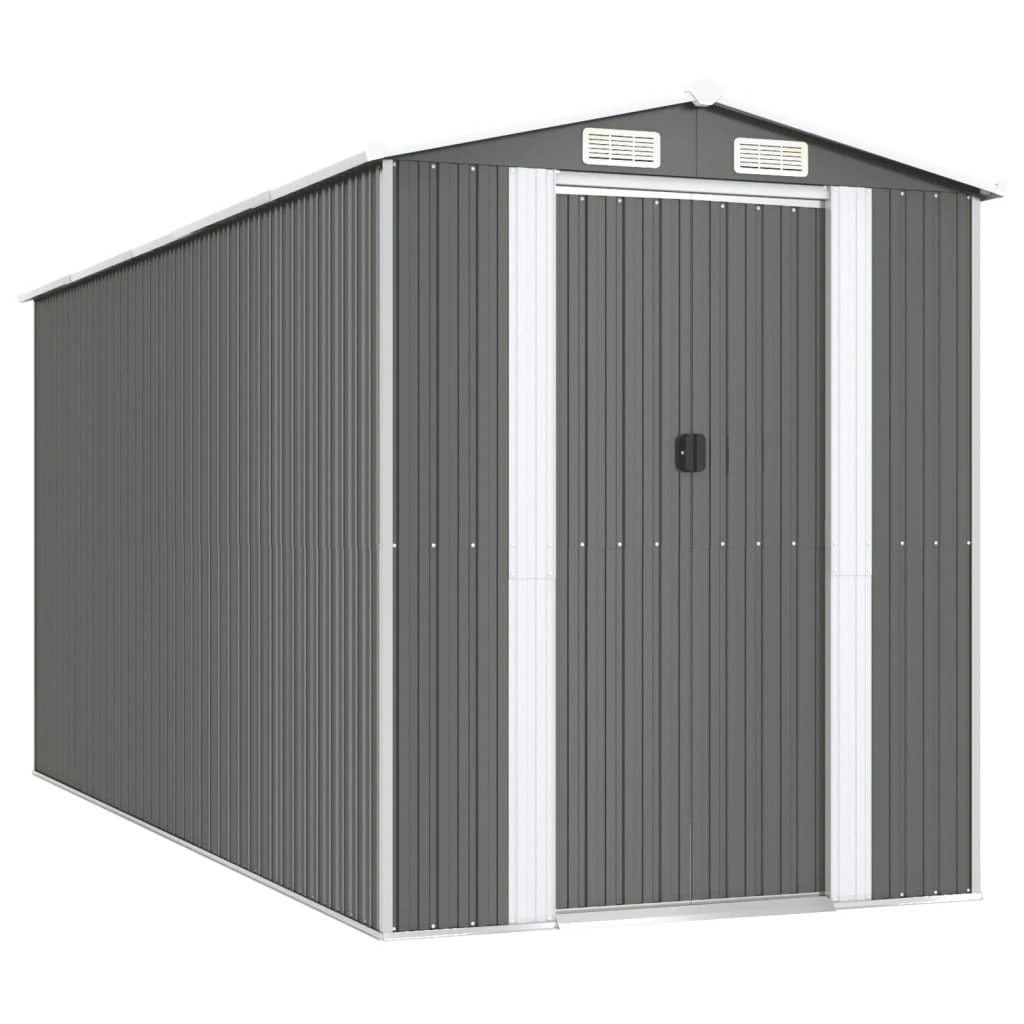 vidaXL dārza šķūnis, gaiši pelēks, 192x440x223 cm, cinkots tērauds