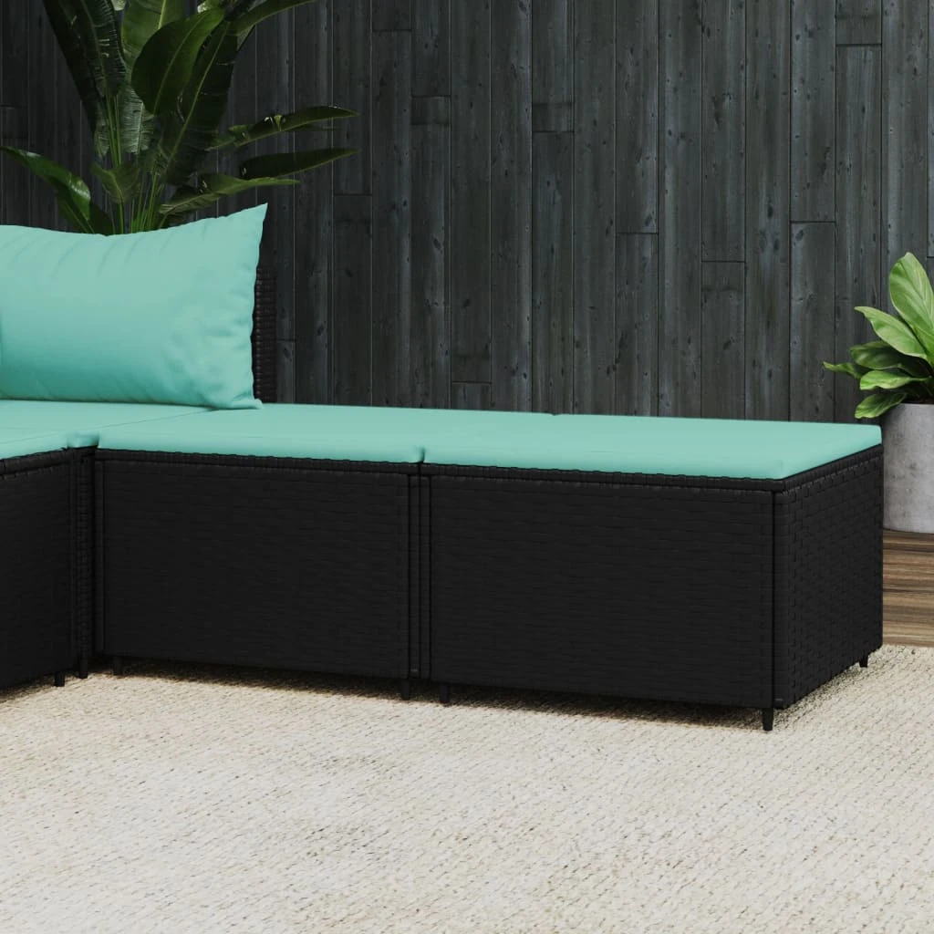 vidaXL dārza kāju soliņi ar spilveniem, 2 gab., melna PE rotangpalma