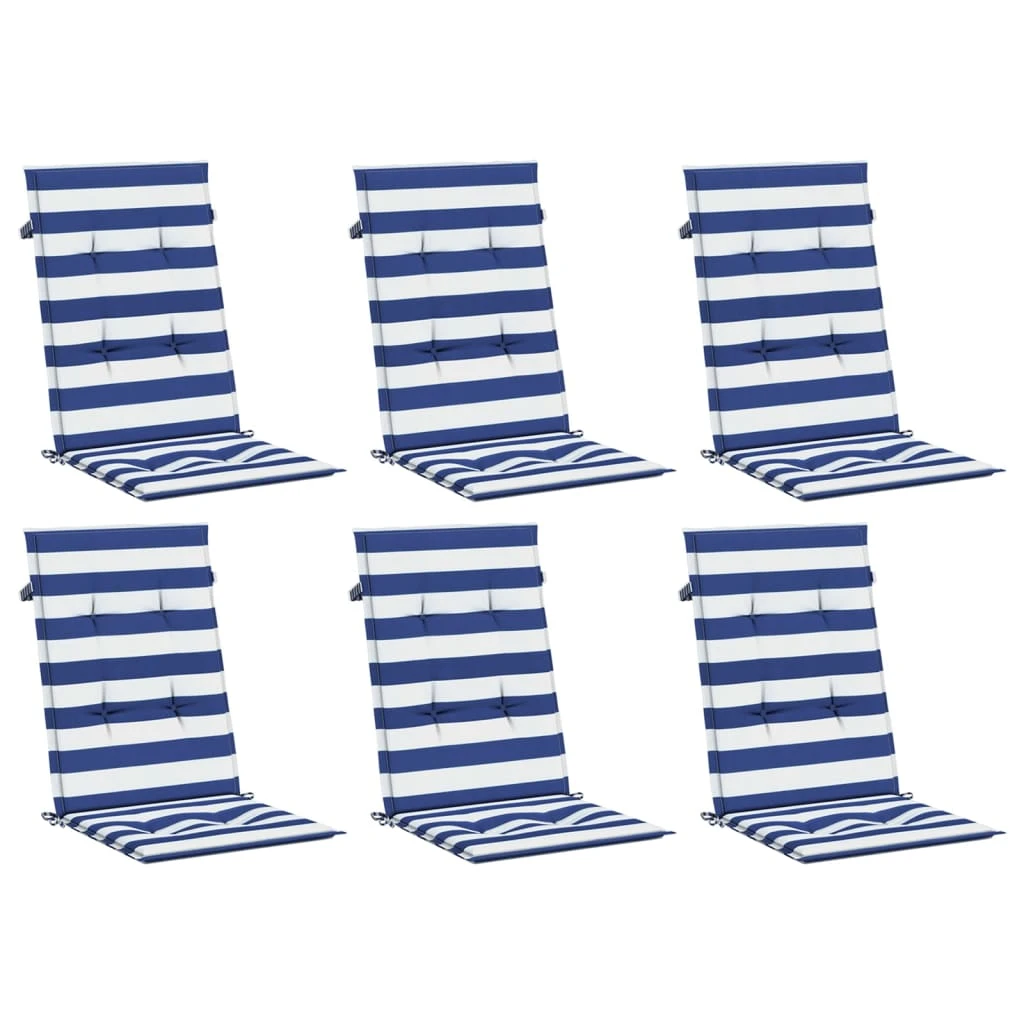 vidaXL krēslu spilveni, 6 gab., zilas un baltas svītras, audums