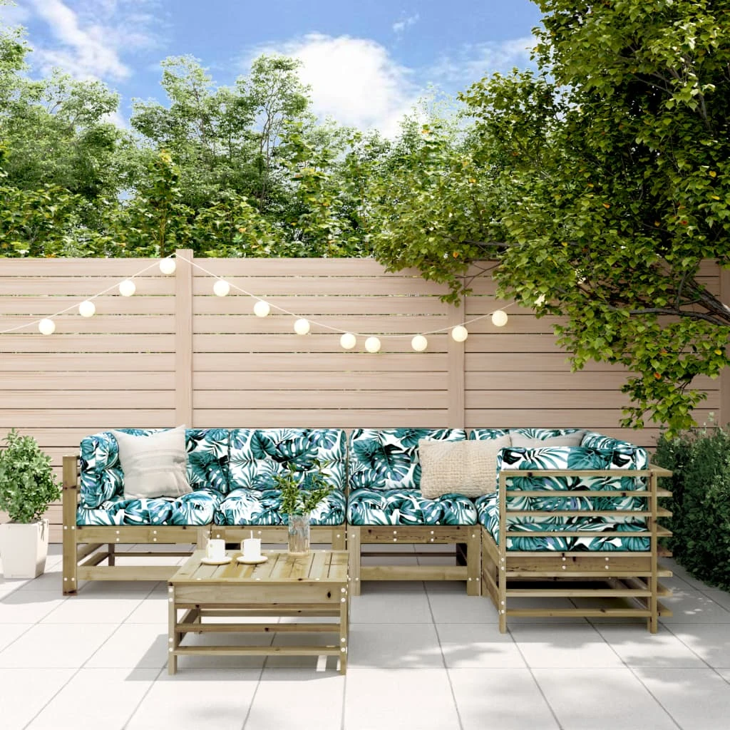 vidaXL 6-daļīgs dārza atpūtas mēbeļu komplekts ar matračiem, priede