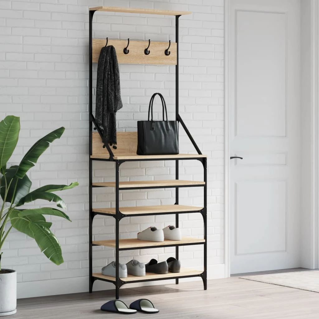 vidaXL drēbju pakaramais ar apavu plauktu, ozola krāsa, 90x34x184 cm