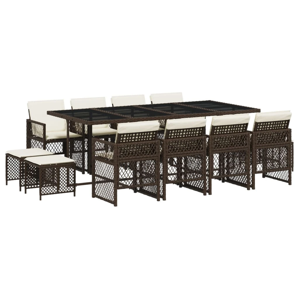 vidaXL 13-daļīgs dārza mēbeļu komplekts, matrači, brūna PE rotangpalma