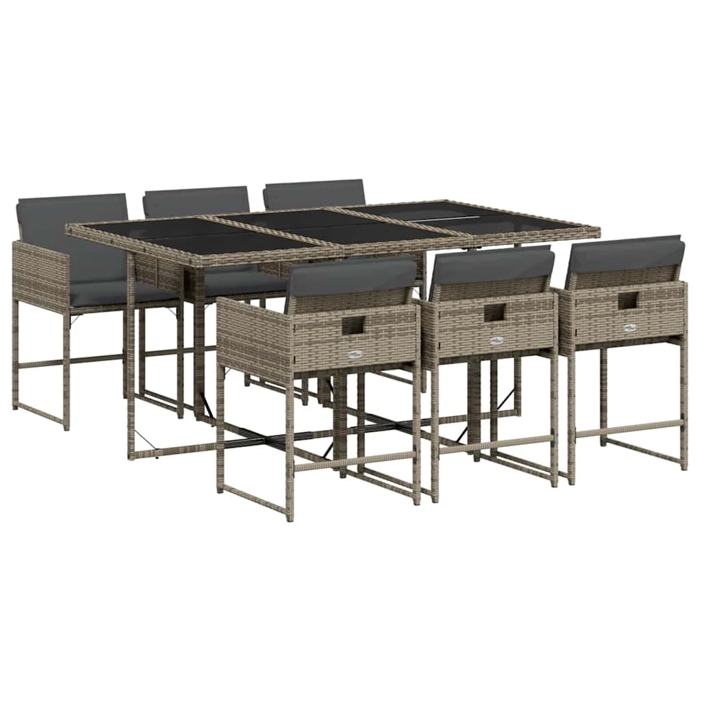 vidaXL 4-daļīgs dārza dīvāna komplekts ar matračiem, pelēks PE pinums