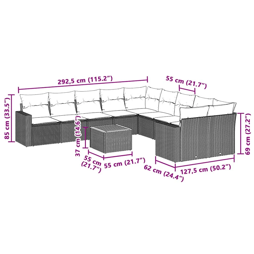 vidaXL 11-daļīgs dārza dīvāna komplekts, matrači, melna PE rotangpalma