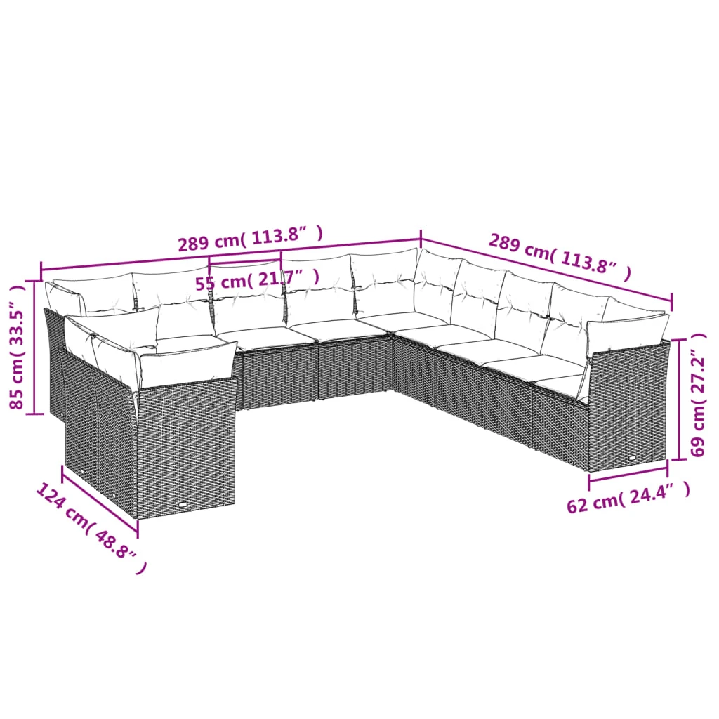 vidaXL 8-daļīgs dārza dīvāna komplekts,matrači, gaiši pelēka PE pinums