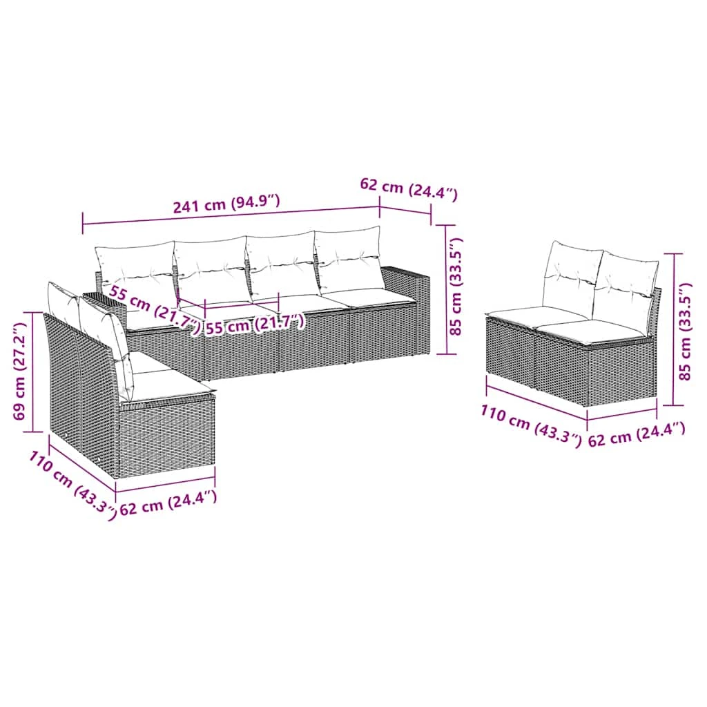 • Moduļu dizains: šim āra mēbeļu komplektam ir moduļu dizains, padarot to viegli pārvietojamu, lai jūs varētu izveidot personalizētu mēbeļu izkārtojumu.