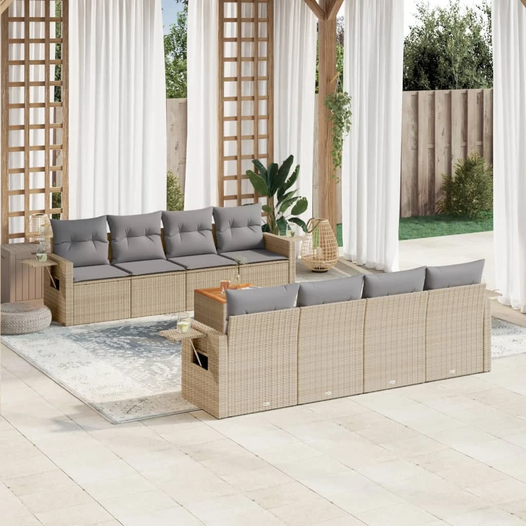 vidaXL 10-daļīgs dārza dīvāna komplekts, matrači, melna PE rotangpalma