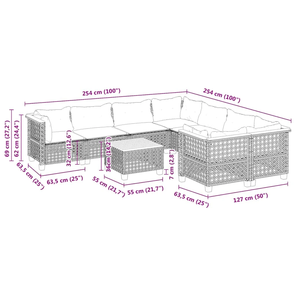 vidaXL Dārza dīvānu komplekts 10 pcs Bēša Poliūtu rotangpalma