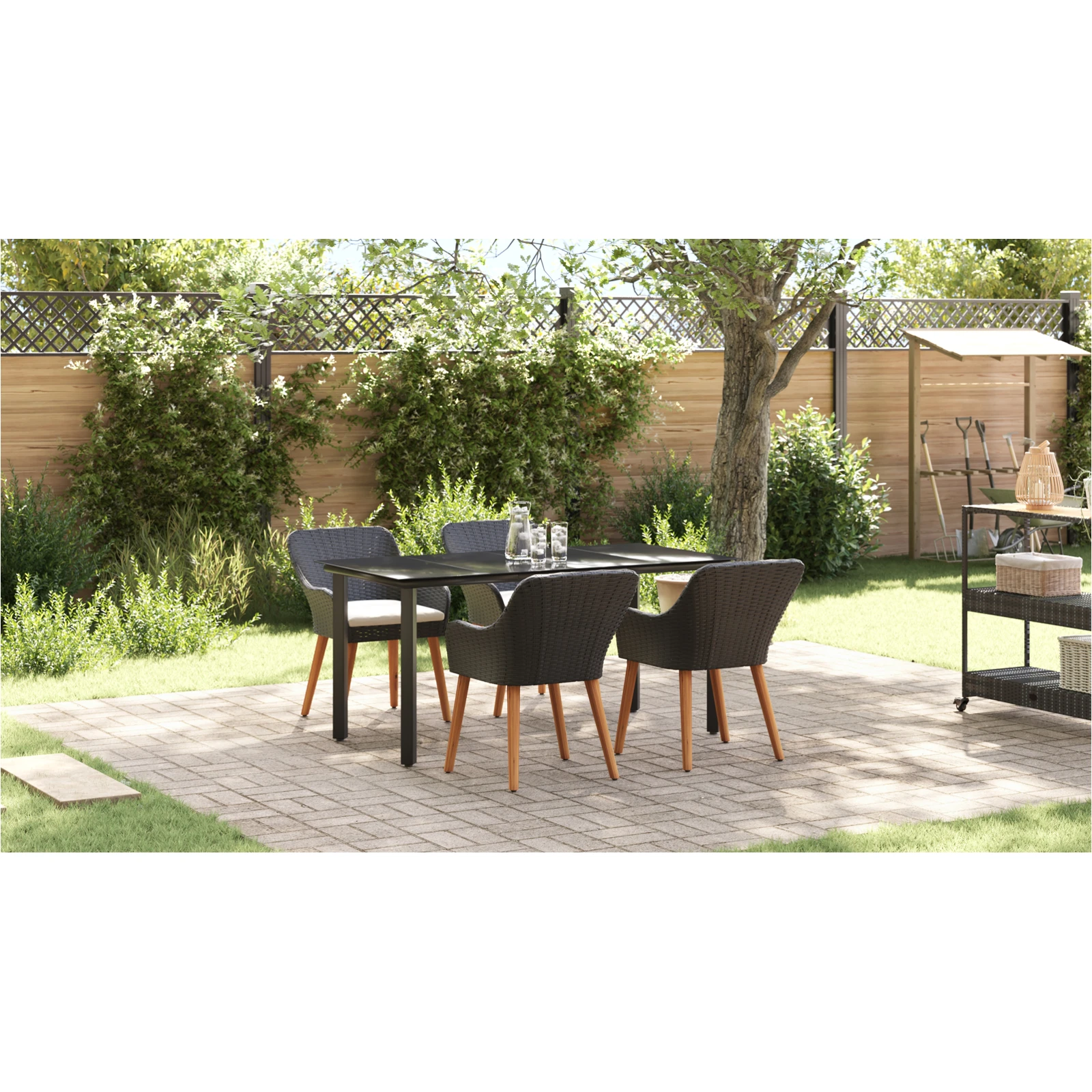 vidaXL Dārza ēdamgalds ar spilvenu 5 pcs Melna poliratāns