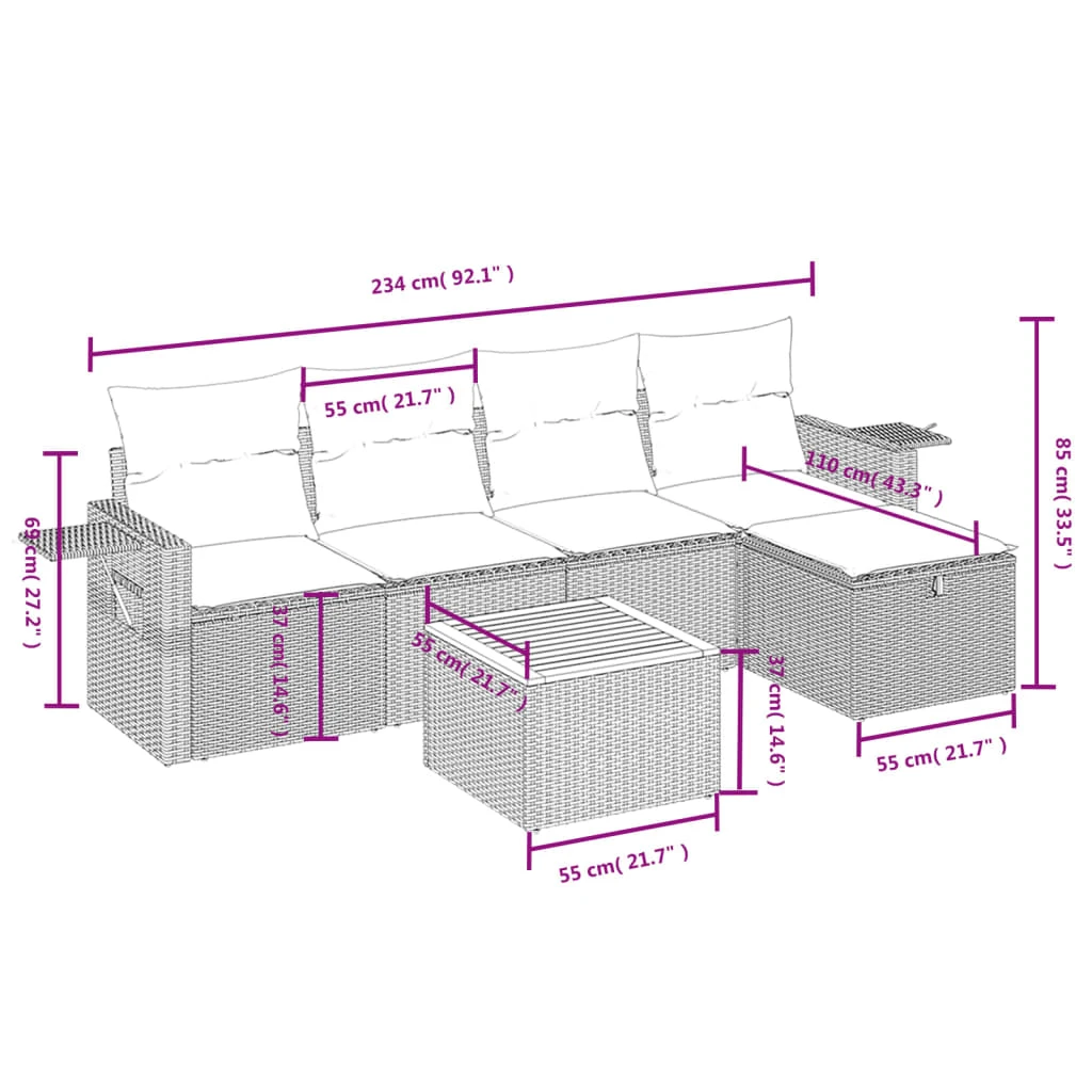 vidaXL Dārza dīvānu komplekts 7 pcs Bēša Poliūtu rotangpalma