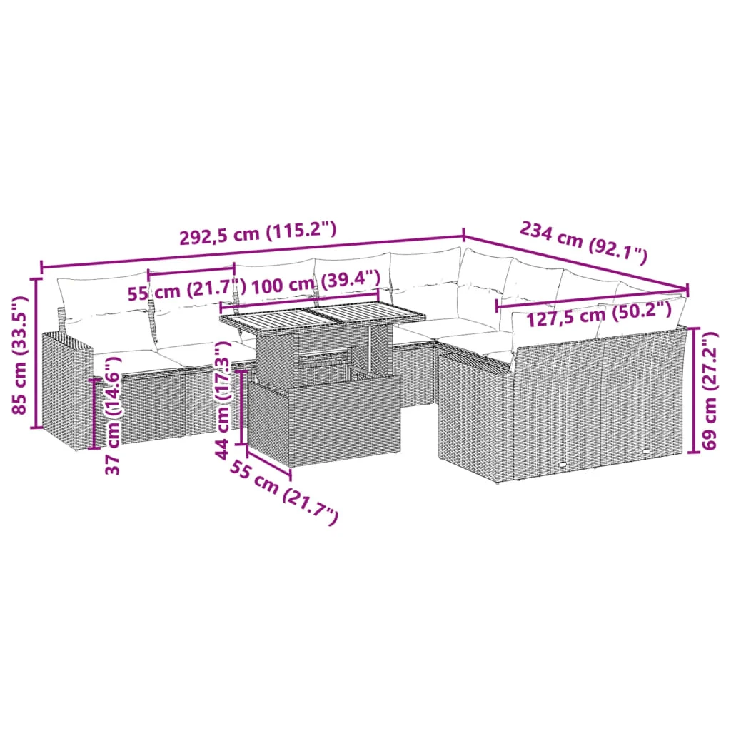 vidaXL 5-daļīgs dārza dīvāna komplekts, matrači, bēša PE rotangpalma