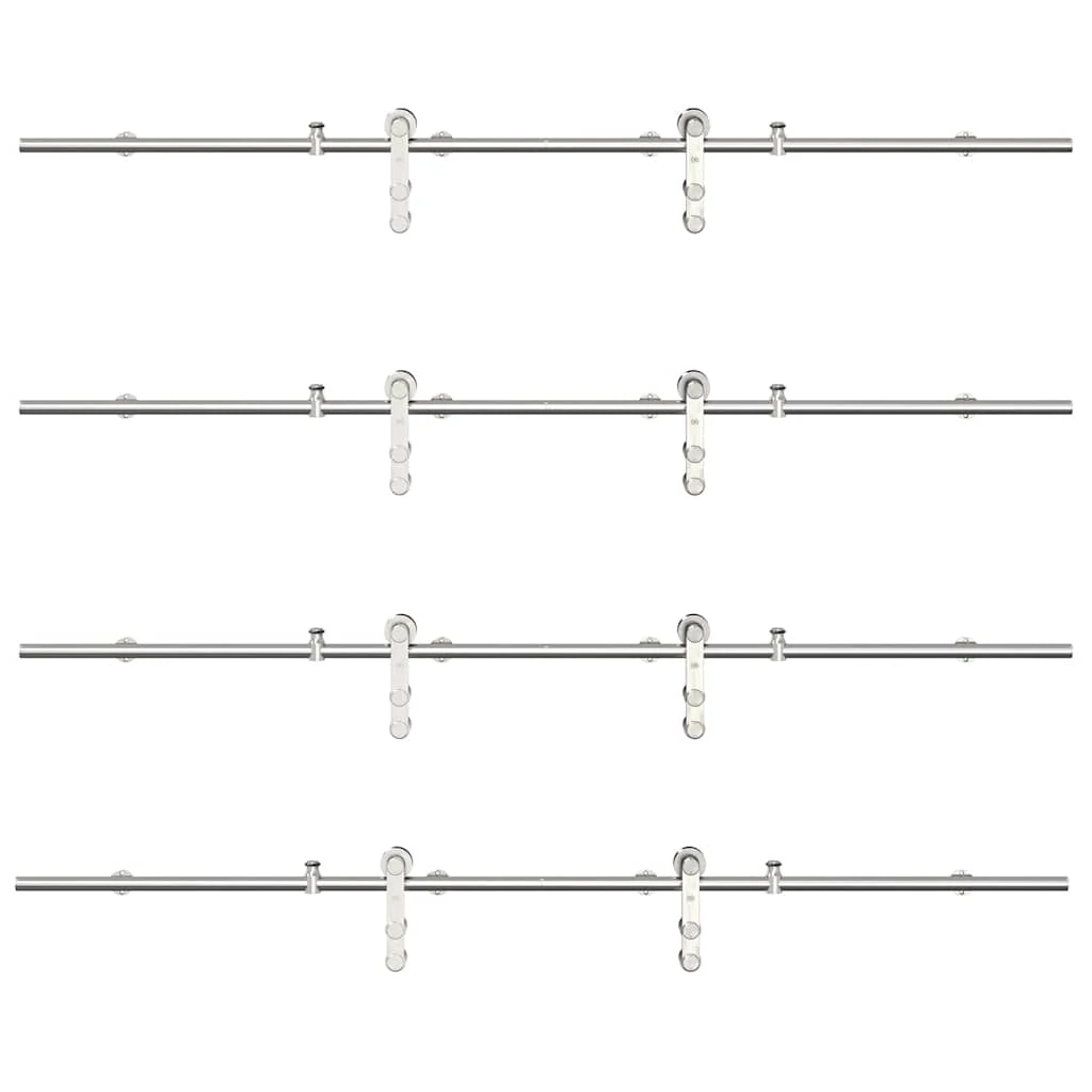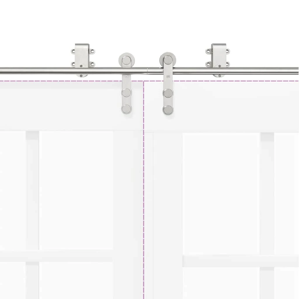 Izmantojot šo bīdāmo durvju aparatūras komplektu, varat viegli iestatīt dubultās sliedes, lai durvju pāris varētu slīdēt viena otrai priekšā un aiz muguras.