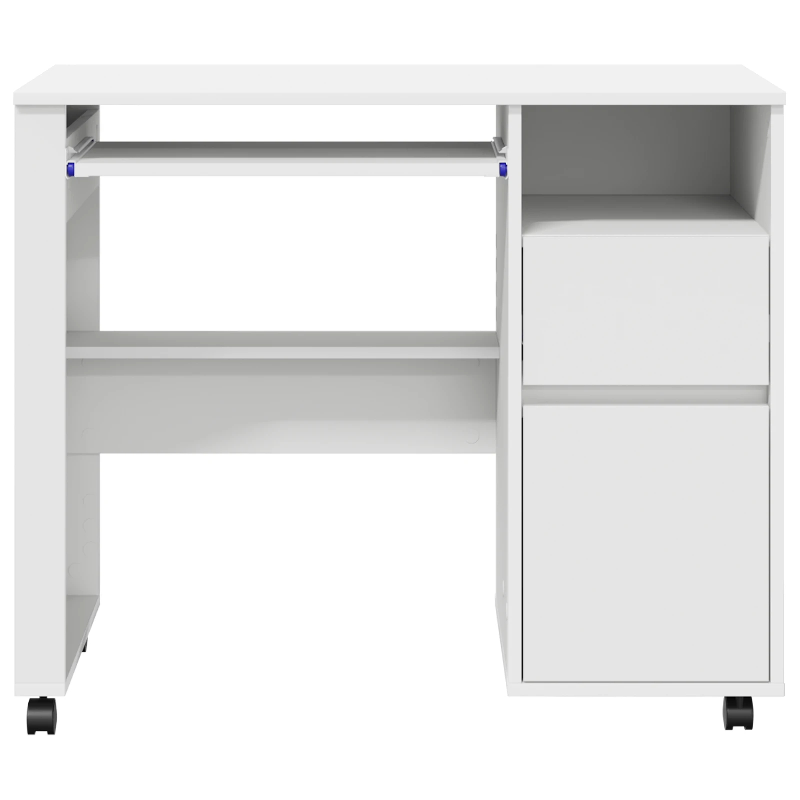 vidaXL rakstāmgalds, 108x30x76 cm, balts, paulonijas masīvkoks