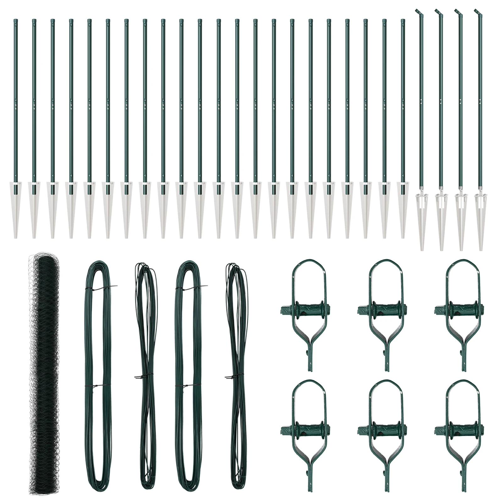 vidaXL stiepļu žogs ar zemes mietiņiem, zaļš, 2,2x25 m