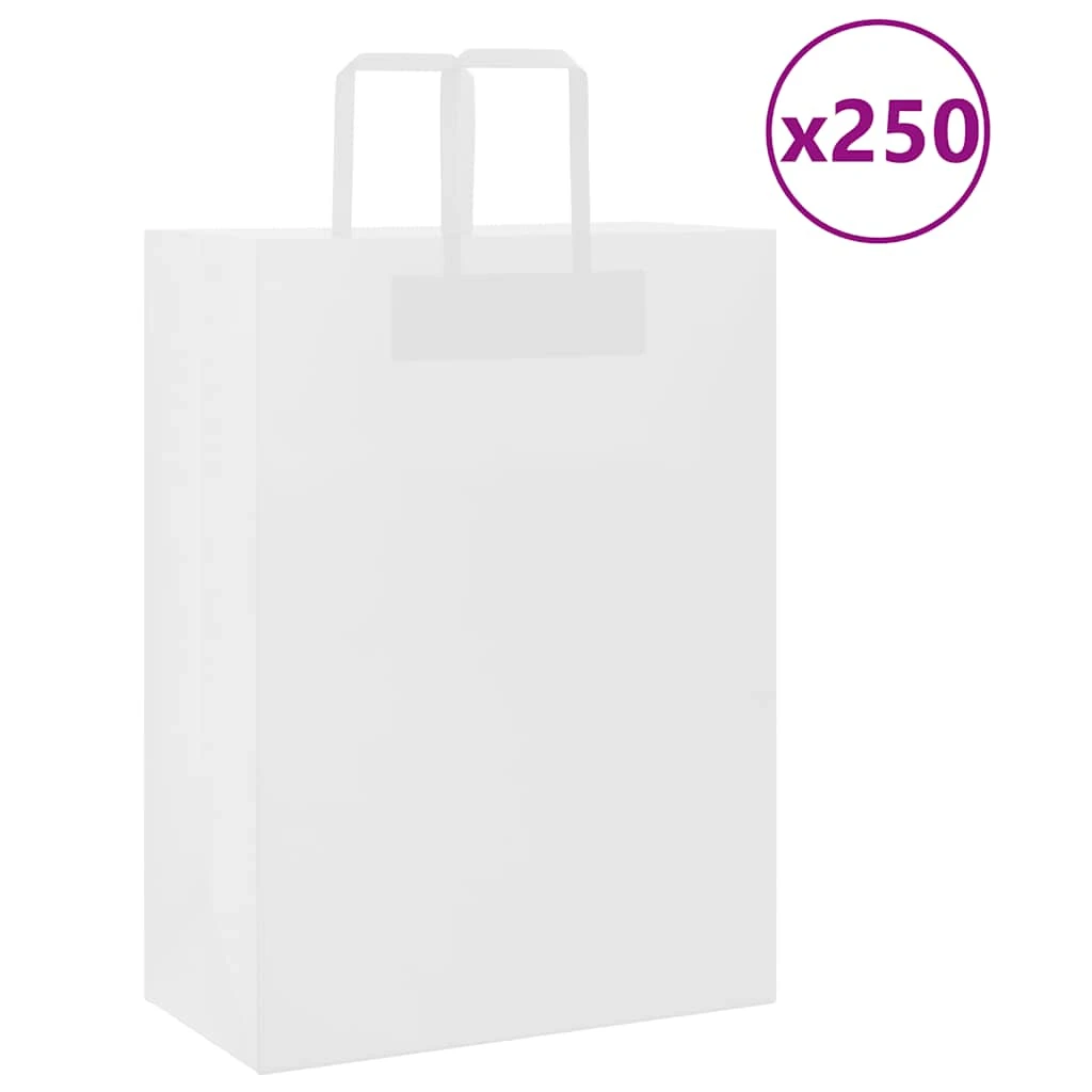 vidaXL papīra maisiņi 250 gab. ar rokturiem, rozā, 21x11x31 cm