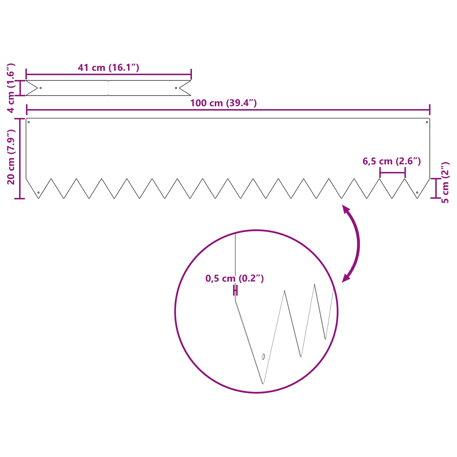 Šī dārza zāliena apmale ir stilīgs risinājums, lai noteiktu vietas jūsu āra teritorijā. Ideāli piemērota dārziem un terasēm, tā radīs skaidru atdalīšanu starp zālienu, puķu dobēm un takām, veidojot organizētu un patīkamu ainavu. Tās modernais dizains viegli iekļaujas dažādos āra dekora stilos, uzlabojot jūsu dārza izskatu un atvieglojot apkopi.