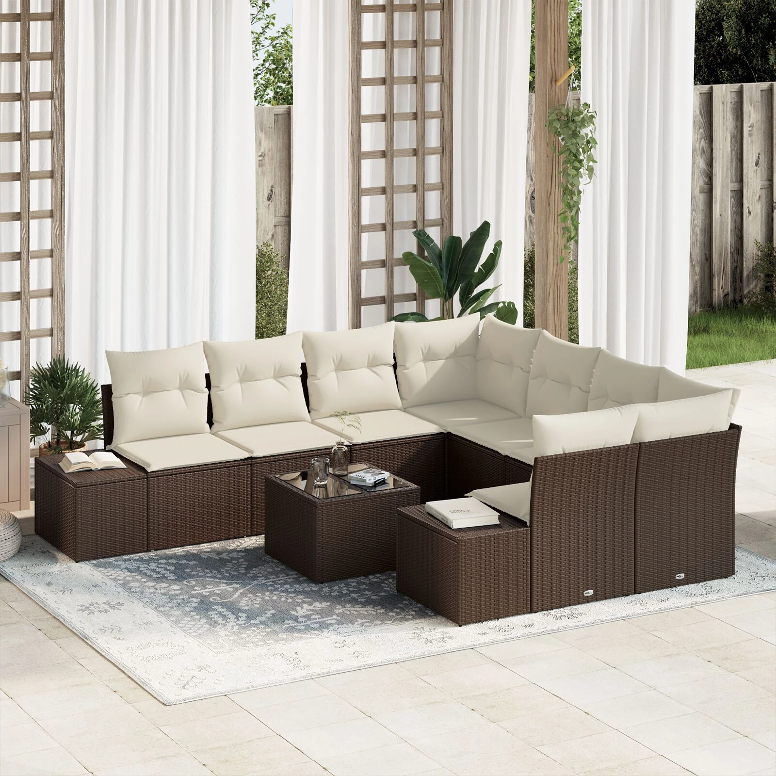 vidaXL 9-daļīgs dārza mēbeļu komplekts, matrači, melns, PE rotangpalma