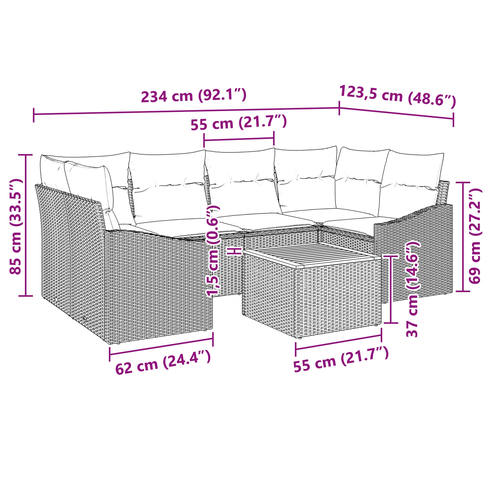 Šis moduļu dārza dīvānu komplekts apvieno vienkāršību un funkcionalitāti, piedāvājot stilīgu risinājumu āra dzīvei. Izgatavots no polietilēna rotangpalmas, tas izstaro modernu estētiku, kas papildina dažādus terases stilus. Ideāli piemērots āra sanāksmēm vai mierīgām vakariņām, katrs elements radīs relaksējošu atmosfēru, nodrošinot komfortu un stilu. Daudzveidīgā forma un modernais dizains ļauj jums baudīt bezgalīgas iespējas, pielāgojot to savām vajadzībām un pievienojot dārzam vieglumu un eleganci.