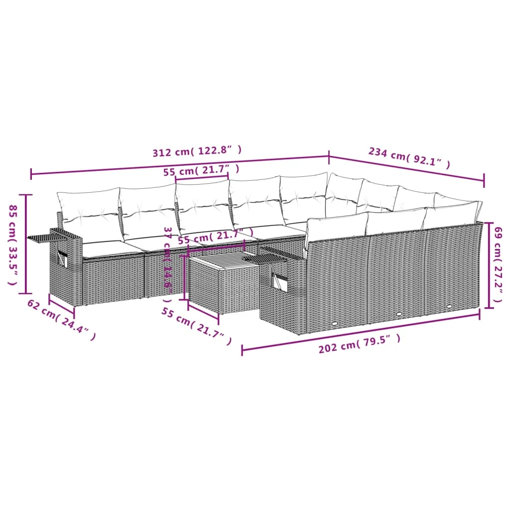 vidaXL 7-daļīgs bistro mēbeļu komplekts, matrači, melna PE