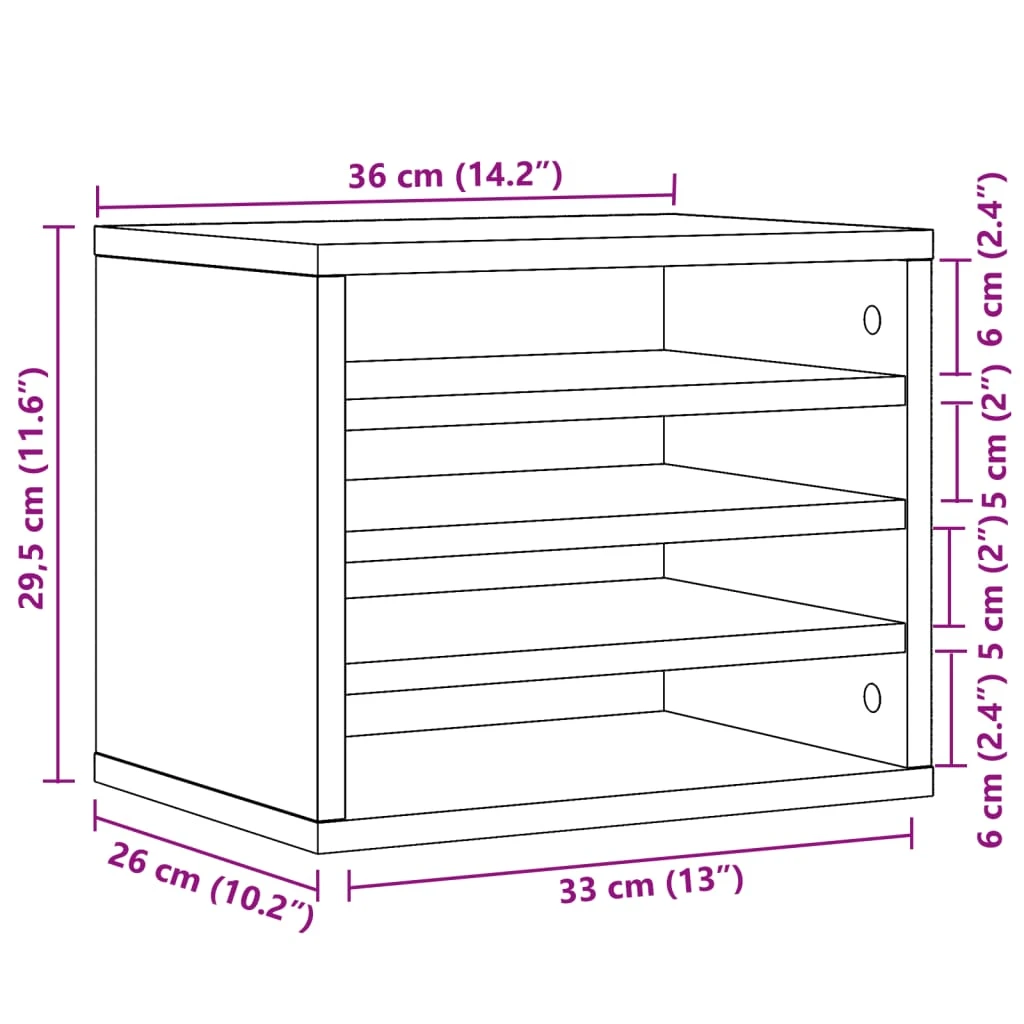 vidaXL rakstāmgalda organizators, pelēka ozola, 36x26x29,5 cm, koks