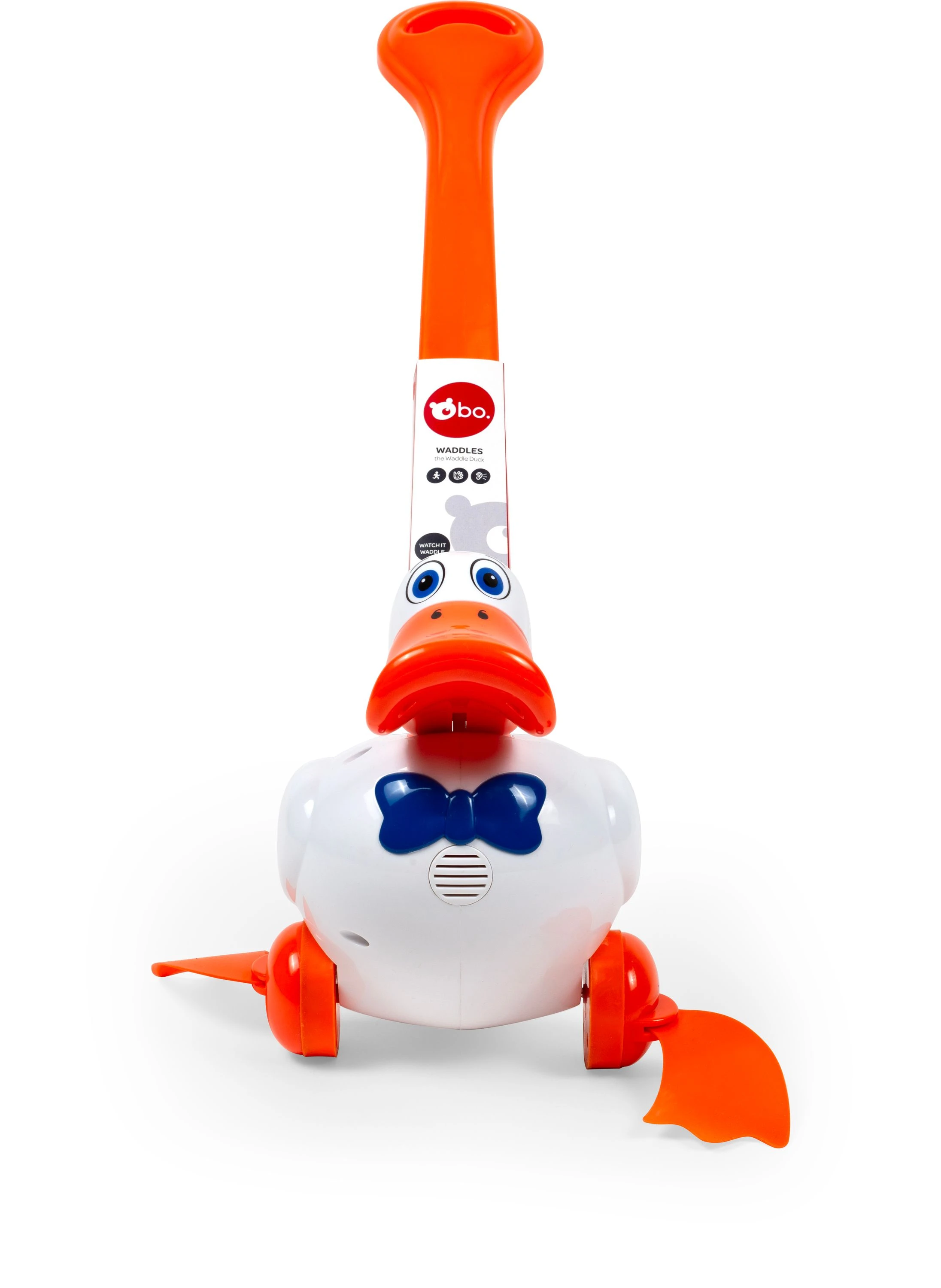 Iepazīstinām ar šo lielisko rotaļlietu. Klasiskā stumjamā rotaļlieta maziem zēniem un meitenēm —Stumjamā pīle – Waddles! Šis apburošais draudziņš ienesīs nebeidzamu prieku jūsu mazuļa rotaļu piedzīvojumos. Čāpojošā pīlīte ir brīnums bez baterijām! Kad jūsu mazulis sper pirmos solīšus, vērojiet, kā pīlīte čāpo un pēkšķ ar katru kustību. Vienkāršs, taču valdzinošs — ideāls rotaļu biedrs maziem bērniem. Izstrādāts, domājot par mazajām rociņām, tāpēc viegli satveramais atvieglo pīlītes stumšanu. Šī stumjamā rotaļlieta ne tikai sagādā prieku, bet arī palīdz stiprināt motoriskās prasmes, vienlaikus iepazīstina mazuli ar cēloņu un seku jēdzienu. Pīlīti ir viegli salikt mazāk nekā 1 minūtē. Rokturi var salikt bez piepūles, un nav nepieciešami nekādi instrumenti. Novērtējiet ātro un ērto salikšanu, izklaidēm atrodoties ceļā. Čāpojošā pīlīte ir paredzēta maziem bērniem vecumā no 18 mēnešiem.