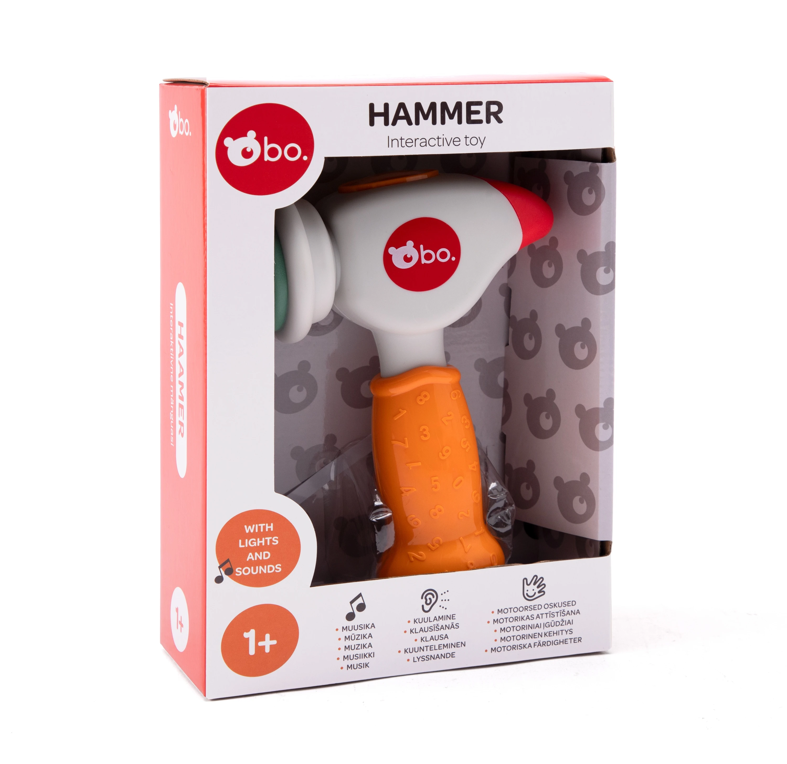 Interaktīvais bo. mazuļu āmurs ir lieliski piemērots maziem bērniem. Katra kustība, radīs jautru skaņu un izgaismos āmuru. Mīkstā gumijas galviņa, padara to drošu bērniem un apkārtējai videi. Vecums: 18M+