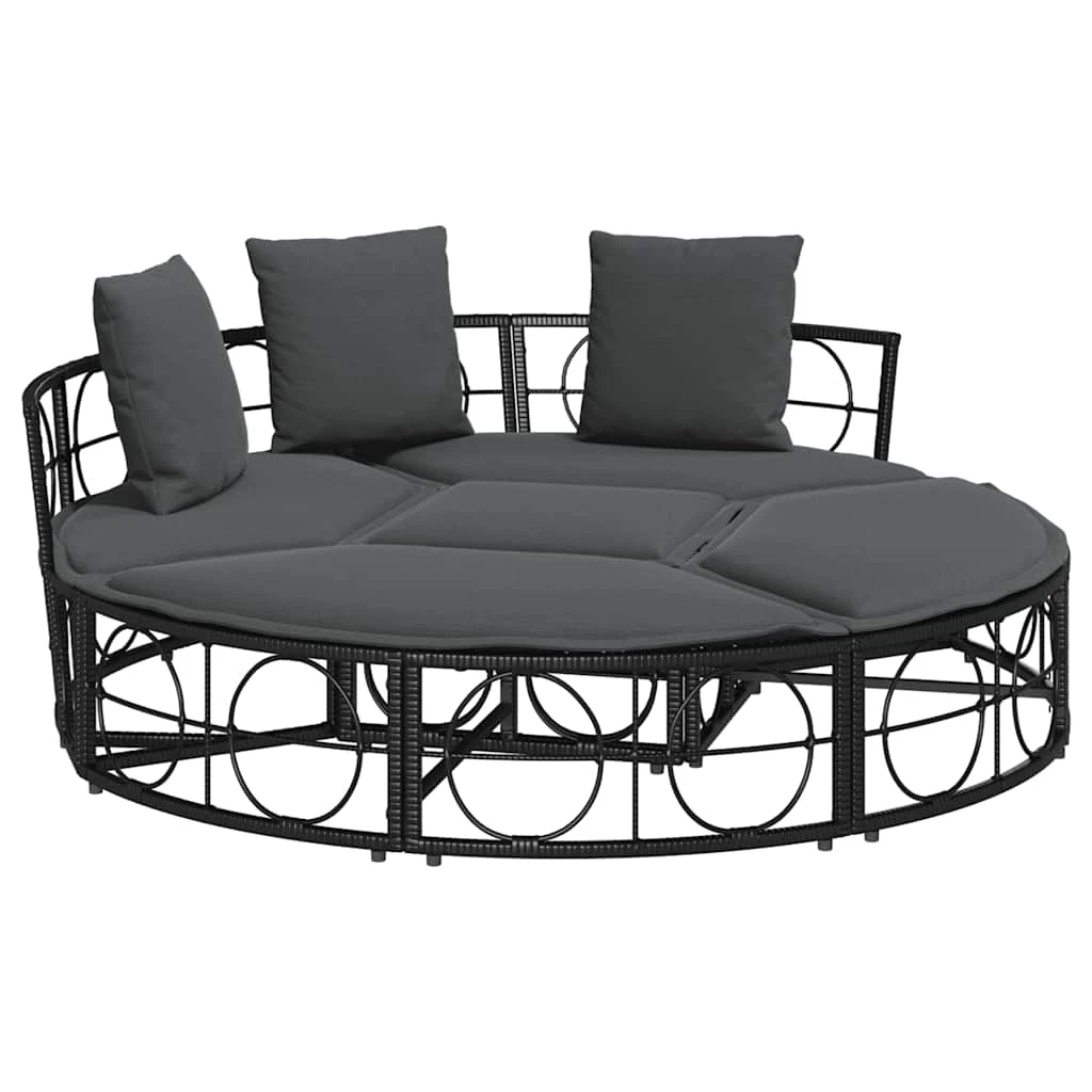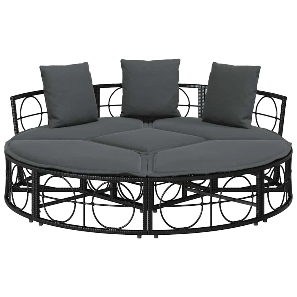 vidaXL 7-daļīgs dārza dīvāna komplekts ar matračiem, melna PE