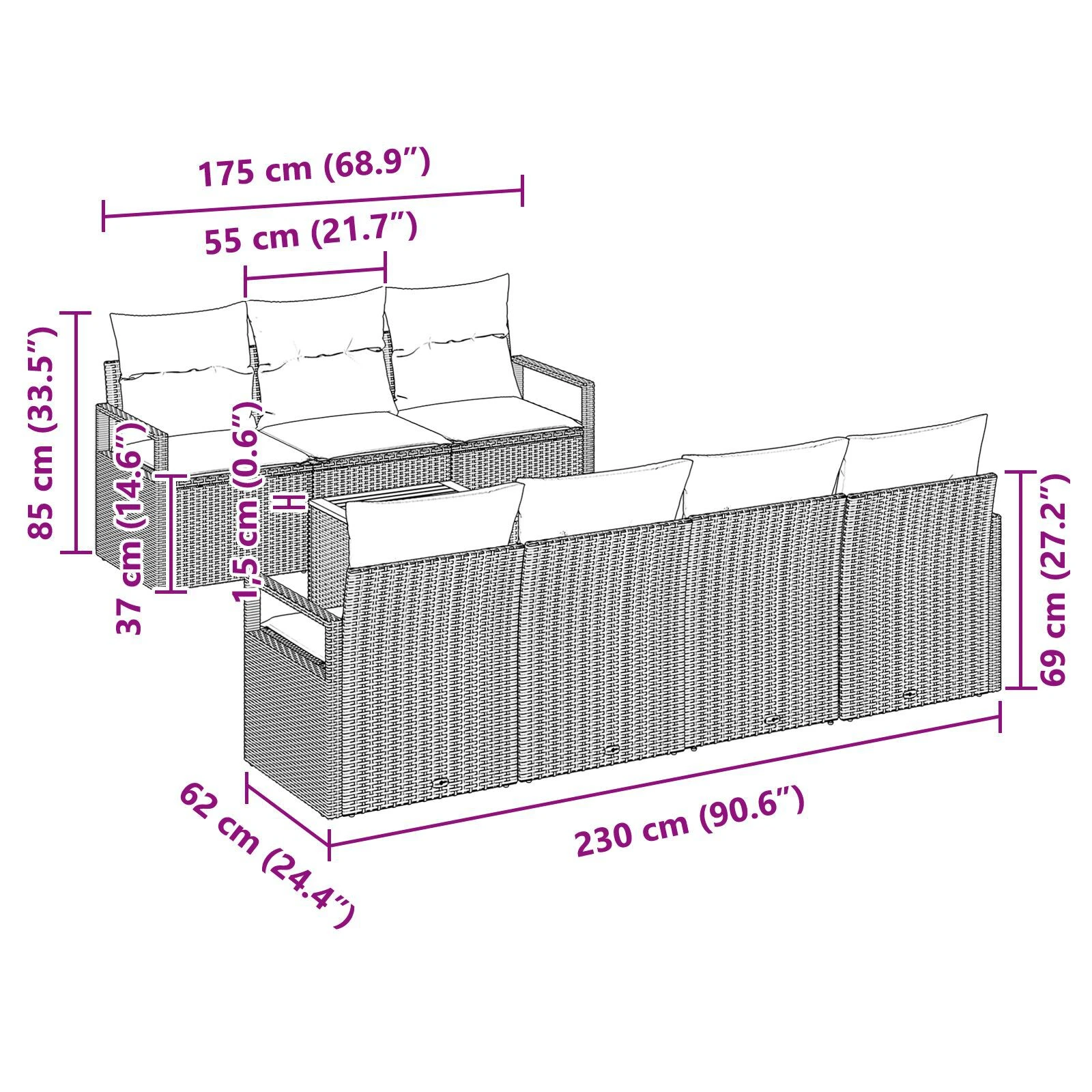 vidaXL 7-daļīgs dārza mēbeļu komplekts ar krēmkrāsas matračiem, priede