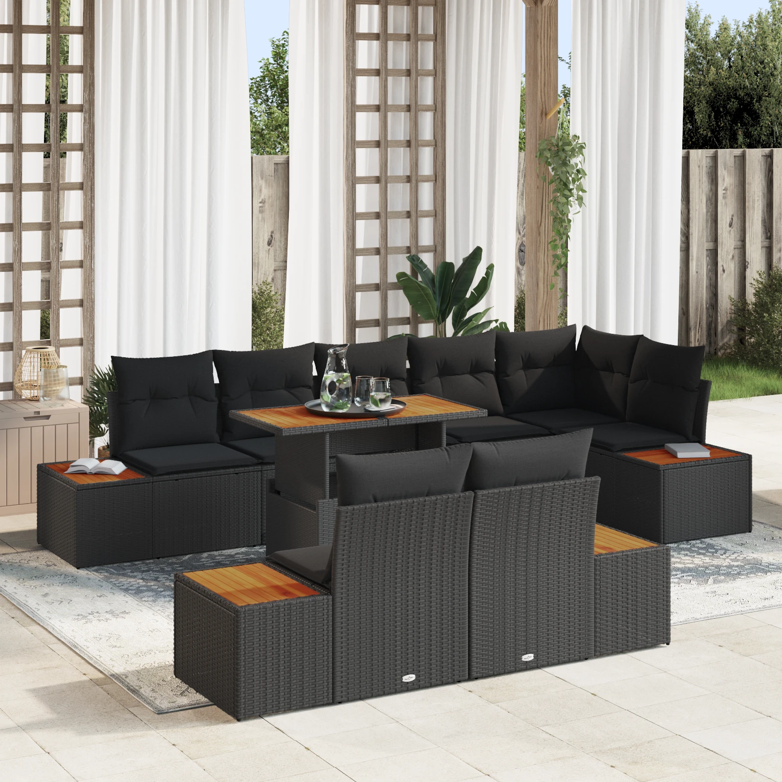Šis dārza dīvānu komplekts ir par stilu un praktiskumu, pateicoties modulārajam dizainam un kvalitatīvajiem materiāliem. Tā elegants poli rattan un pulverkrāsota tērauda rāmis padara to ideāli piemērotu modernas āra telpām, nodrošinot ērtu sēdvietu vasaras pasākumiem vai atpūtai saulē.