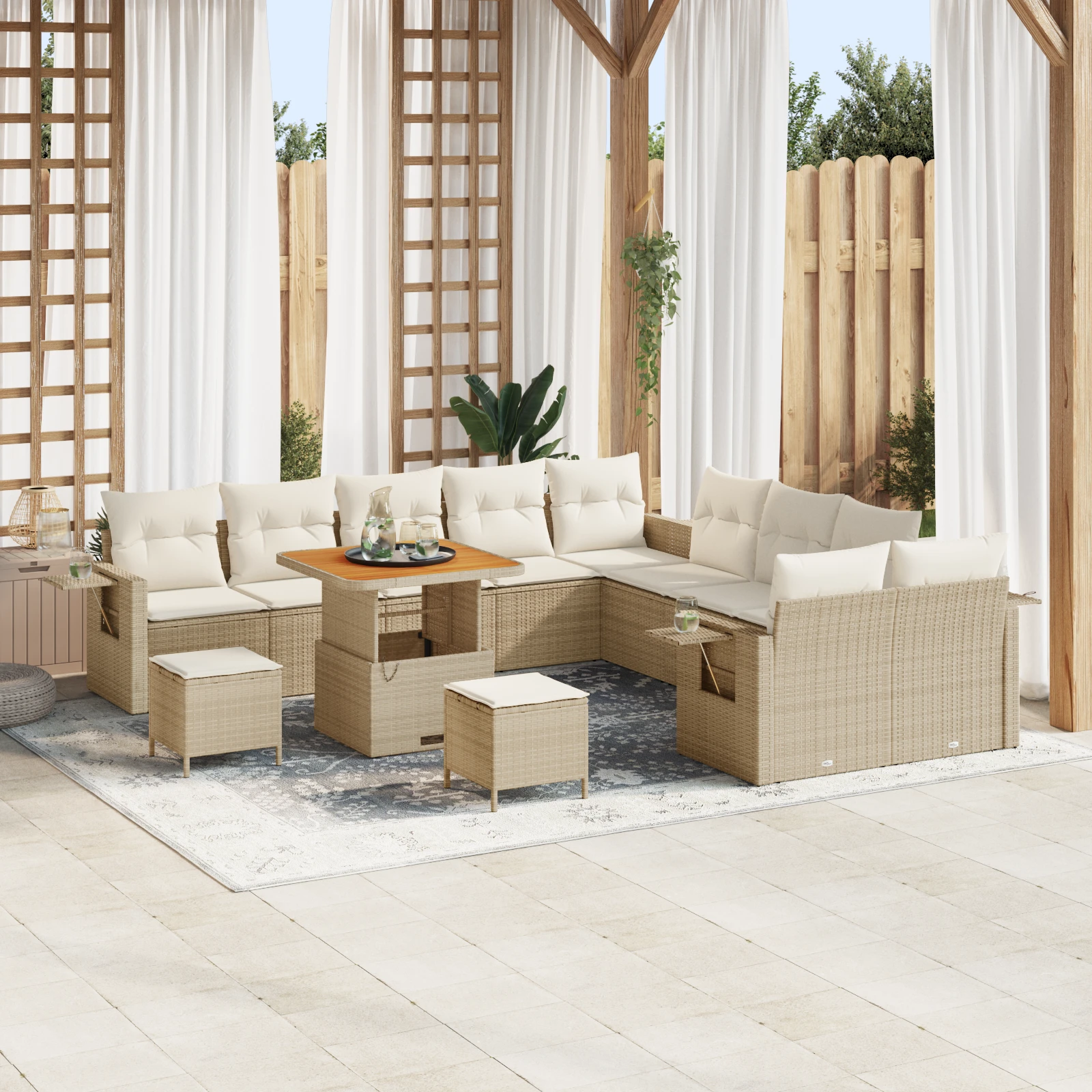 vidaXL 7-daļīgs dārza atpūtas mēbeļu komplekts ar matračiem, bambuss