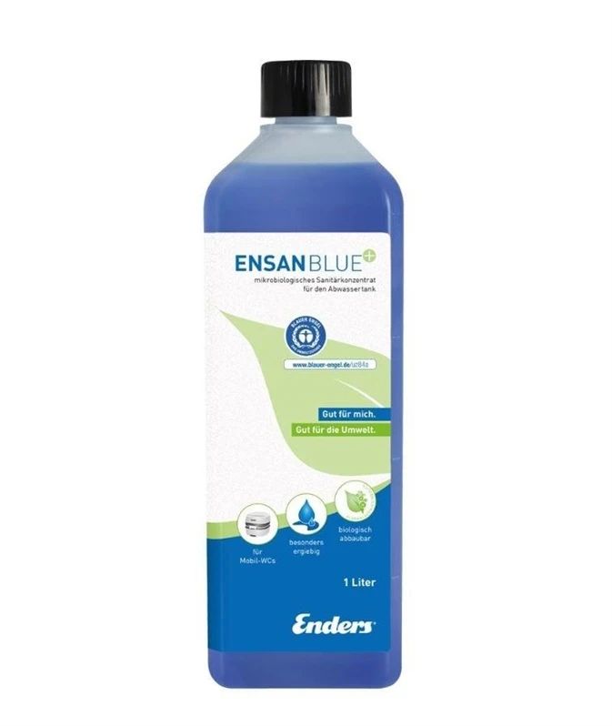 Zīmols- Enders. Modelis- Blue + . Artikuls- 497698. Tilpums- 1 l. Mērķis- Biotualešu apakšējai (notekūdeņu) tvertnei. Sadala atkritumus. dezinficē. izdala patīkamu aromātu. Līdzeklis aptur pūšanas procesus. novērš gāzu veidošanos un šķīdina cietās atkritumu daļiņas.. Izmantošana- Deva - uz 10 l ūdens nepieciešami apmēram 5 ml koncentrāta. No 1 l koncentrāta var pagatavot apmēram 200 l šķidruma apakšējā tvertnes uzpildīšanai.. Obligātā garantija- 24 mēn. Garantija juridiskām personām- 12 mēn.