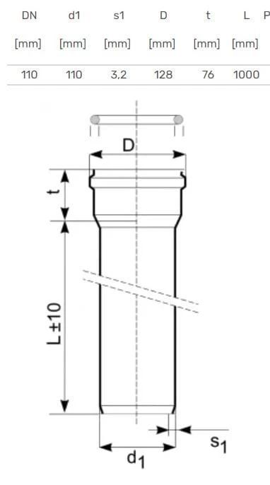 Zīmols- Magnaplast. Diametrs- 110 mm. Sieniņas biezums- 3.2 mm. Santehniskais savienojums. diametrs- 110 mm – Gluds gals. 110 mm – Uzmavas gals. Garums- 1 m. Caurules gredzena stingrības klase- SN4 (N). Materiāls- Polivinilhlorīds (PVC). Krāsa- Brūna. Maksimālā pastāvīgo notekūdeņu temperatūra- 60 °C. Paredzētas lietošanai- Āra kanalizācijai.