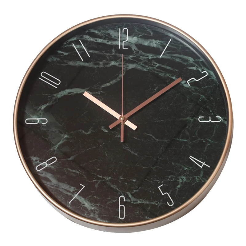 Elegants sienas pulkstenis ar tumšu marmora raksta ciparnīcu un smalku zelta krāsas rāmi piešķirs izsmalcinātu akcentu jebkurai telpai. Plastmasas rāmis apvieno vieglumu ar izturību. Darbojas ar 1 x AA bateriju (nav iekļauta komplektā). Diametrs 30 cm.