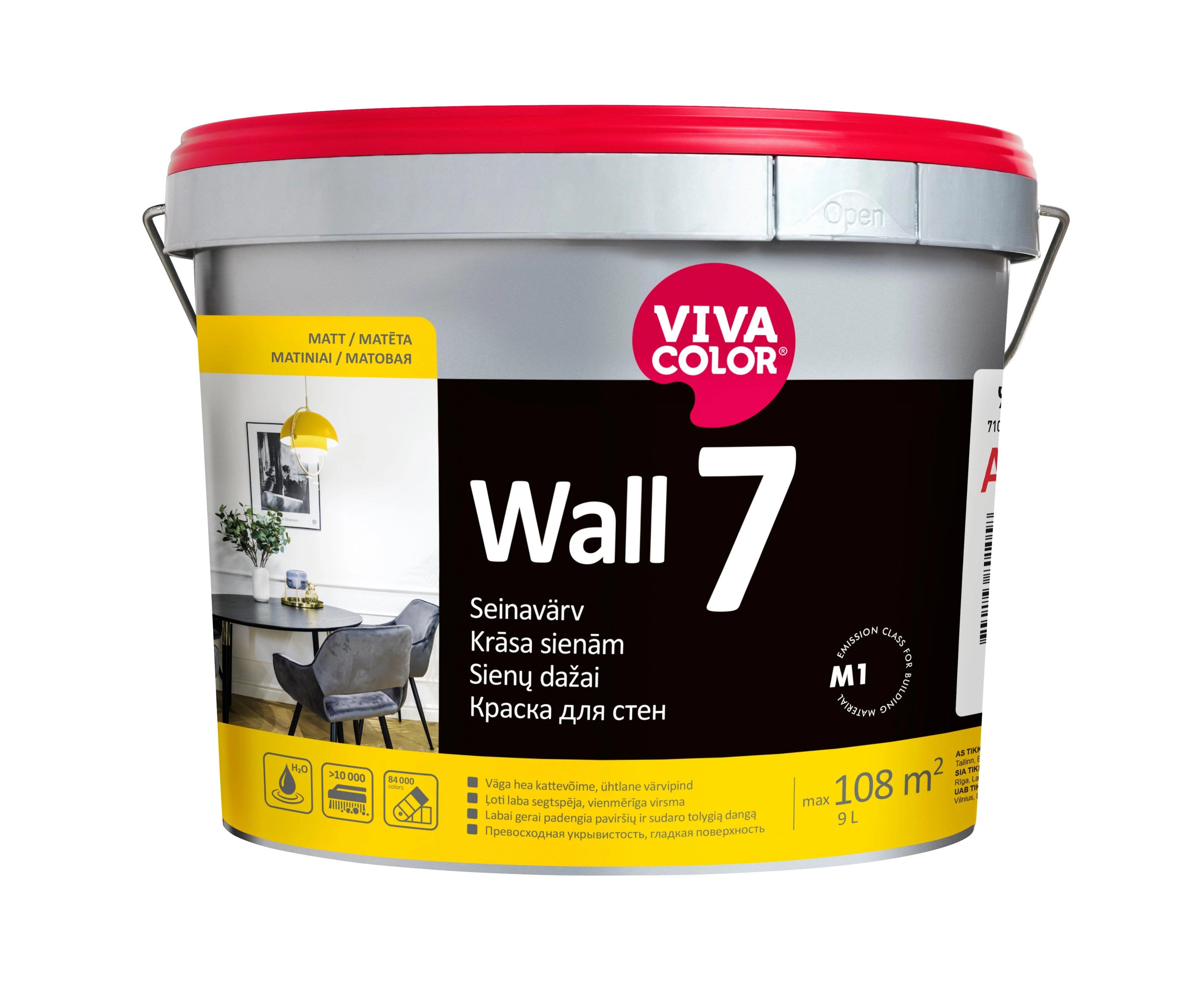 Zīmols- Vivacolor. Iepakojuma daudzums. l- 9. Krāsas tips- Emulsija. Krāsas tonis- Balta. Spīdums- Matēts. Izturība pret mitro tīrīšanu- 1. izturības klase. Ar spīduma pakāpi- 7. Atšķaidītājs- Ūdens. Apdares darbiem- Iekštelpu . Krāsas funkcija- Sienas. Griesti. Patēriņš- 8 - 12 m²/l. Piemērotās virsmas- Betons. Ģipškartons. Lakotas virsmas. Ķieģeļu mūris. Krāsota virsma. Darbarīki- Veltnis. Ota. Žūšanas laiks (pirms pieskaršanās)- 0.5 - 0.5h. Žāvēšanas laiks pirms apstrādes- 2 - 2h.