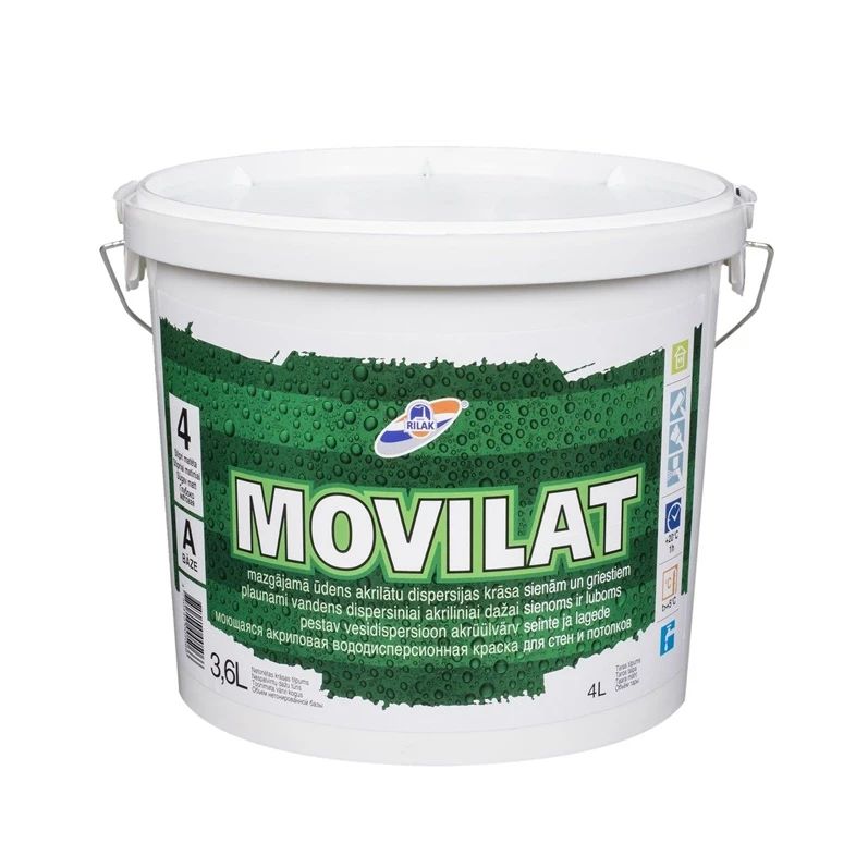 Zīmols- Rilak. Iepakojuma daudzums. l- 3.6. Krāsas tips- Emulsija. Krāsas tonis- Balta. Spīdums- Matēts. Izturība pret mitro tīrīšanu- 2. izturības klase. Atšķaidītājs- Ūdens. Apdares darbiem- Iekštelpu . Krāsas funkcija- Sienas. Griesti. Krāsotu virsmu defektu novēršanai. Patēriņš- 8-12 m²/l. Piemērotās virsmas- Betons. Ģipškartons. Lakotas virsmas. Ģipša bloki. Kartons. OSB paneļi. Ķieģeļu mūris. Krāsota virsma. Darbarīki- Veltnis. Smidzināšanas uzgalis. Ota. Žūšanas laiks (pirms pieskaršanās)- 1 - 1h. Žāvēšanas laiks pirms apstrādes- 1 - 1h. Piemērots karstas iedarbības virsmām- Nē. Īpašības- Izveido dziļi matētu pārklājumu. kas ir izturīgs pret mazgāšanu.. Modelis- 4.