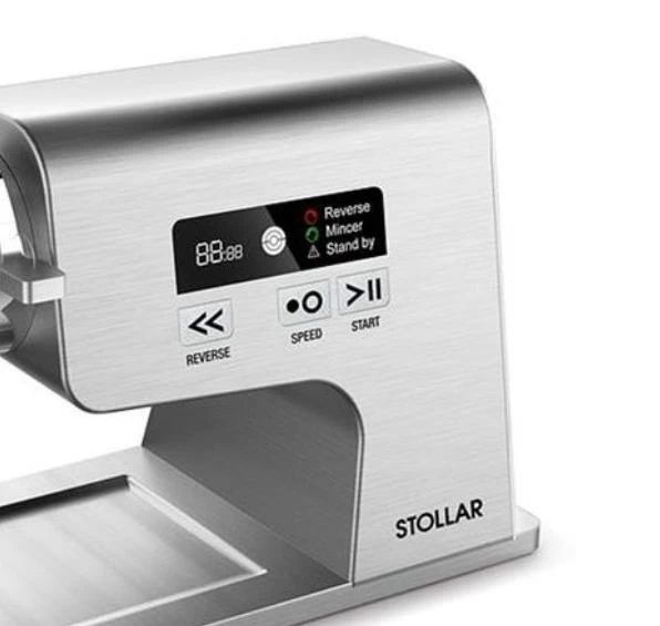 Zīmols- Stollar. Modelis- BMG900. Krāsa- Pelēka. Korpusa materiāls- Alumīnijs. Maksimālā jauda- 2500 W. Nominālā jauda- 400 W. Ātrumu skaits- 2. Ražīgums kg/min- 3. Disku skaits- 3. Reversais pārnesums- Jā. Komplektācija- Uzgalis kubbe (1 gb.). Uzgalis smalcināšanai (1 gb.). Uzgalis sagriešanai (1 gb.). Obligātā garantija- 24 mēn.
