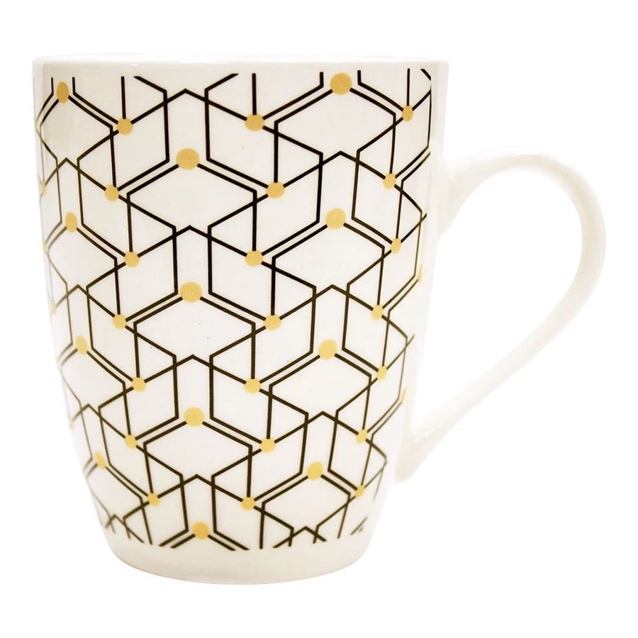 Stilīga keramikas krūze Motive ar abstraktu rakstu, kurā apvienotas līnijas un dzelteni punkti, rada unikālu un mūsdienīgu izskatu. Kvalitatīvais materiāls nodrošina izturību un saglabā dzēriena temperatūru, bet dizains iederas dažādos interjeros. Krūzi var droši mazgāt trauku mazgājamajā mašīnā un izmantot mikroviļņu krāsnī. Tilpums 350 ml, izmērs 9 x 9 cm.
